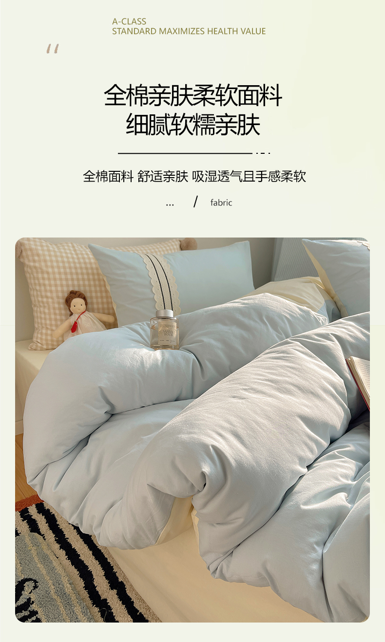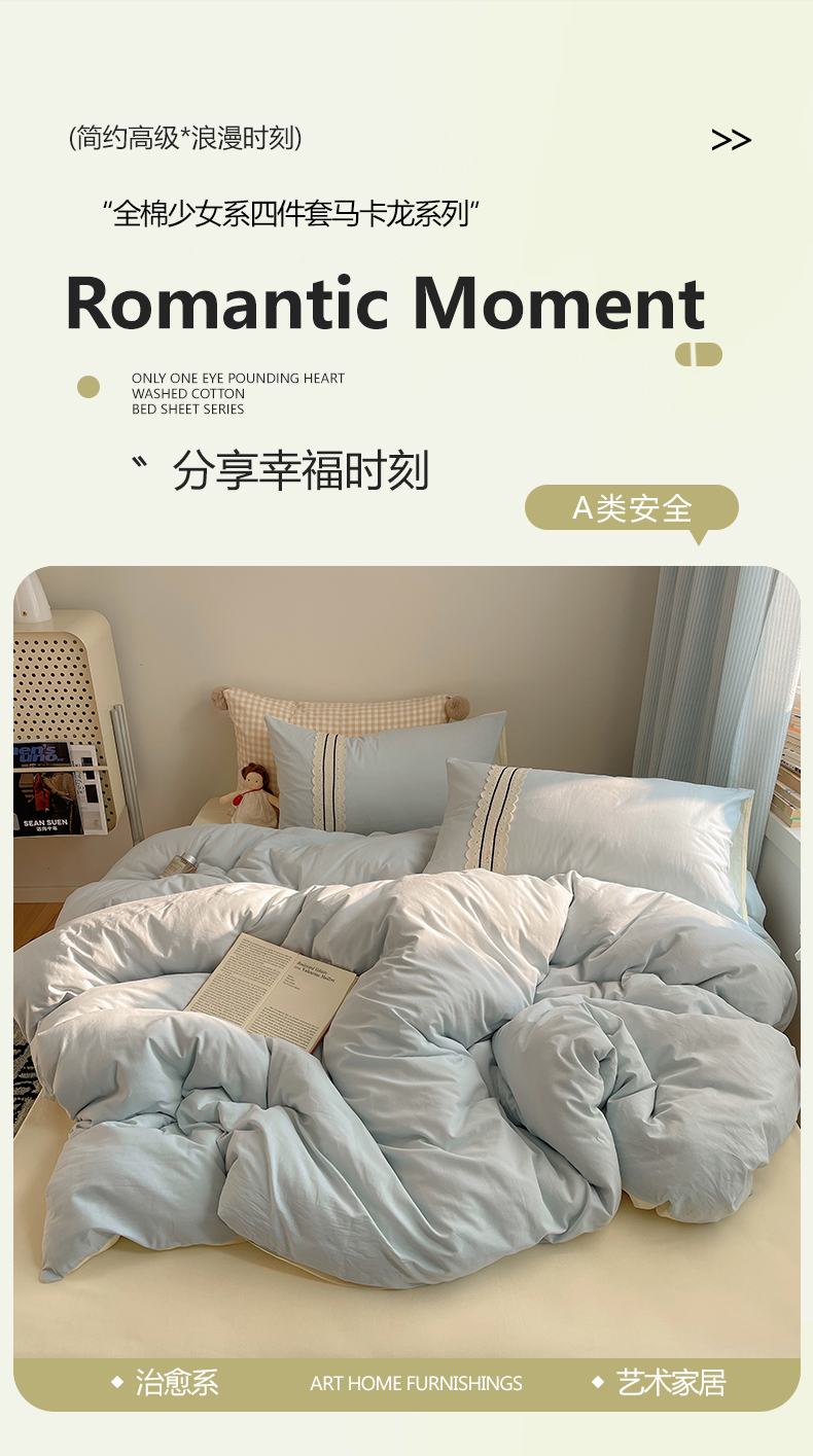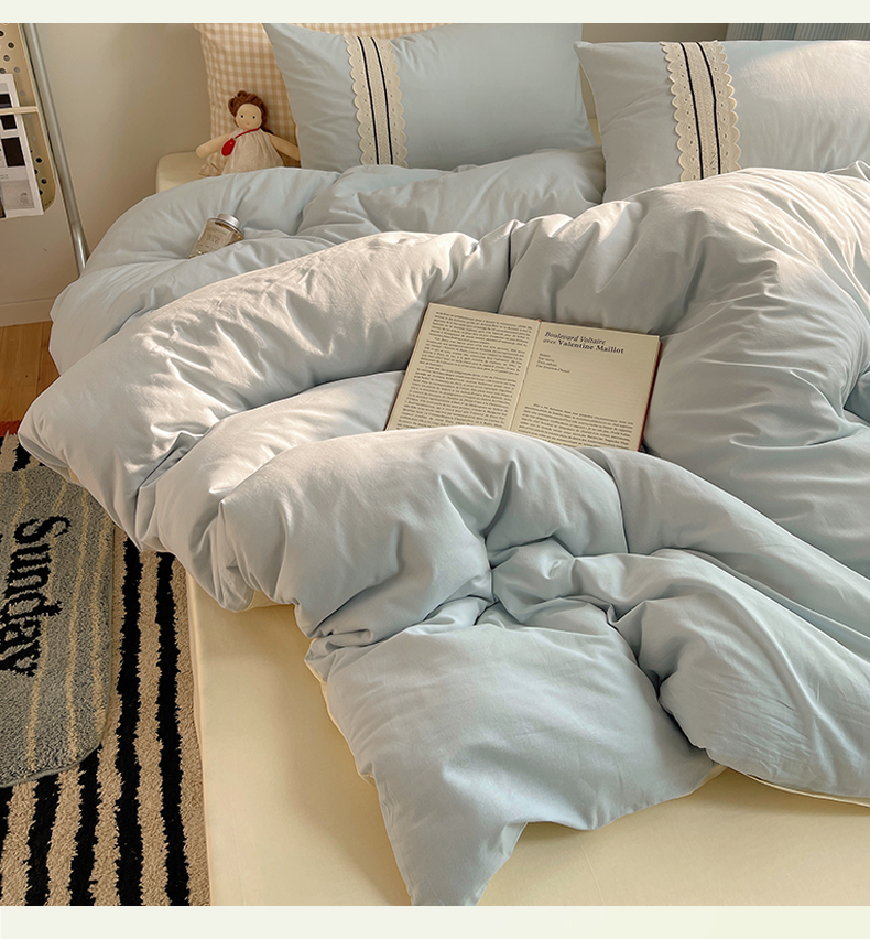 当前位置: 91家纺网 > 商品网购 > 床品套件 > 四件套 > 水洗棉四件套 > 三朵家纺 2026新款ins风全棉纯棉水洗棉少女系四件套-玛卡龙系列 马卡龙-米蓝