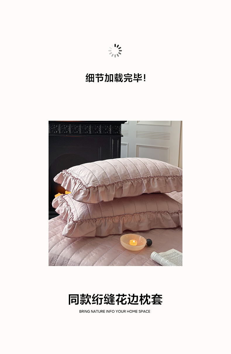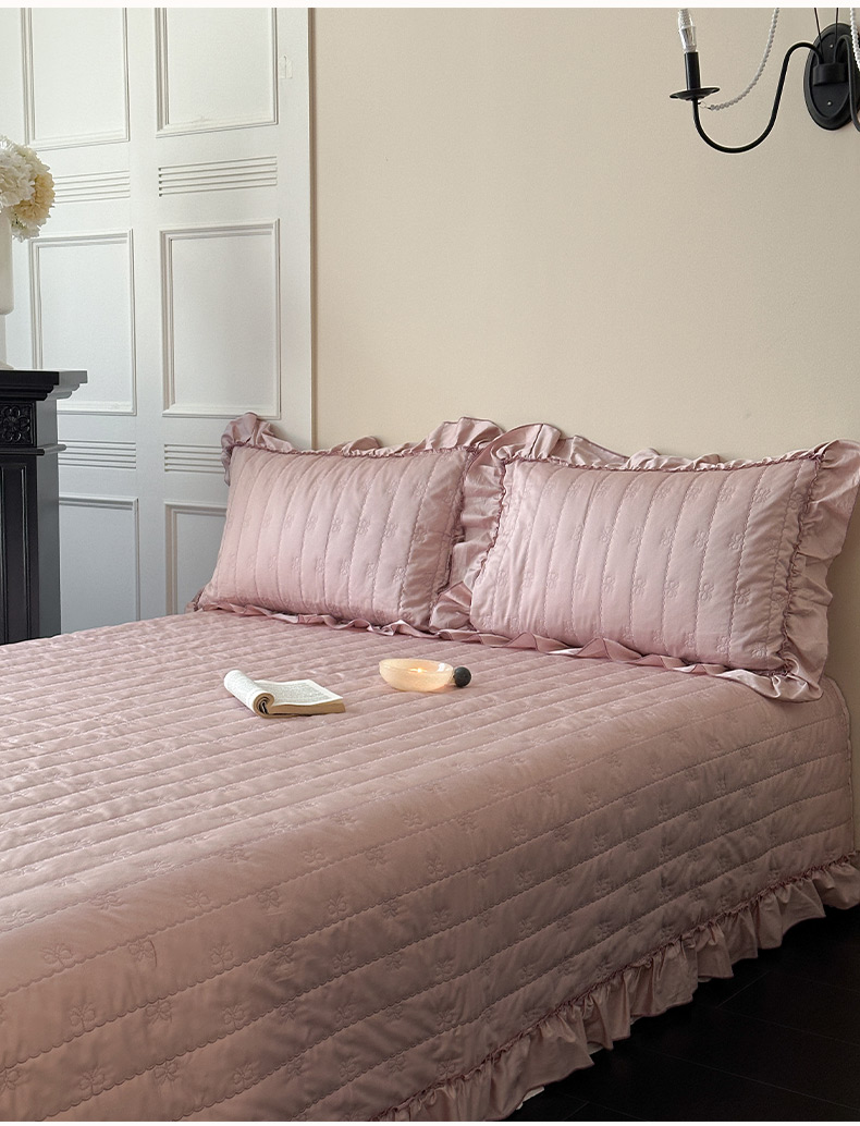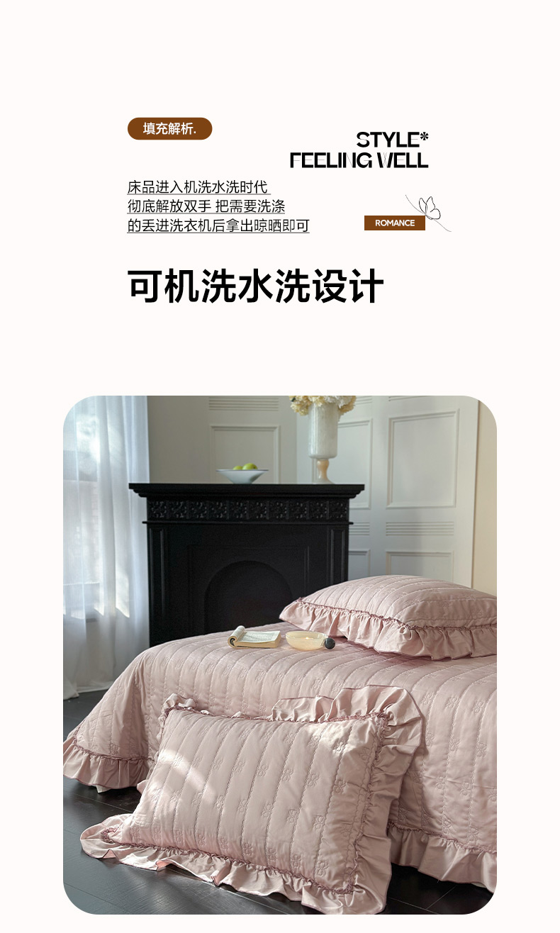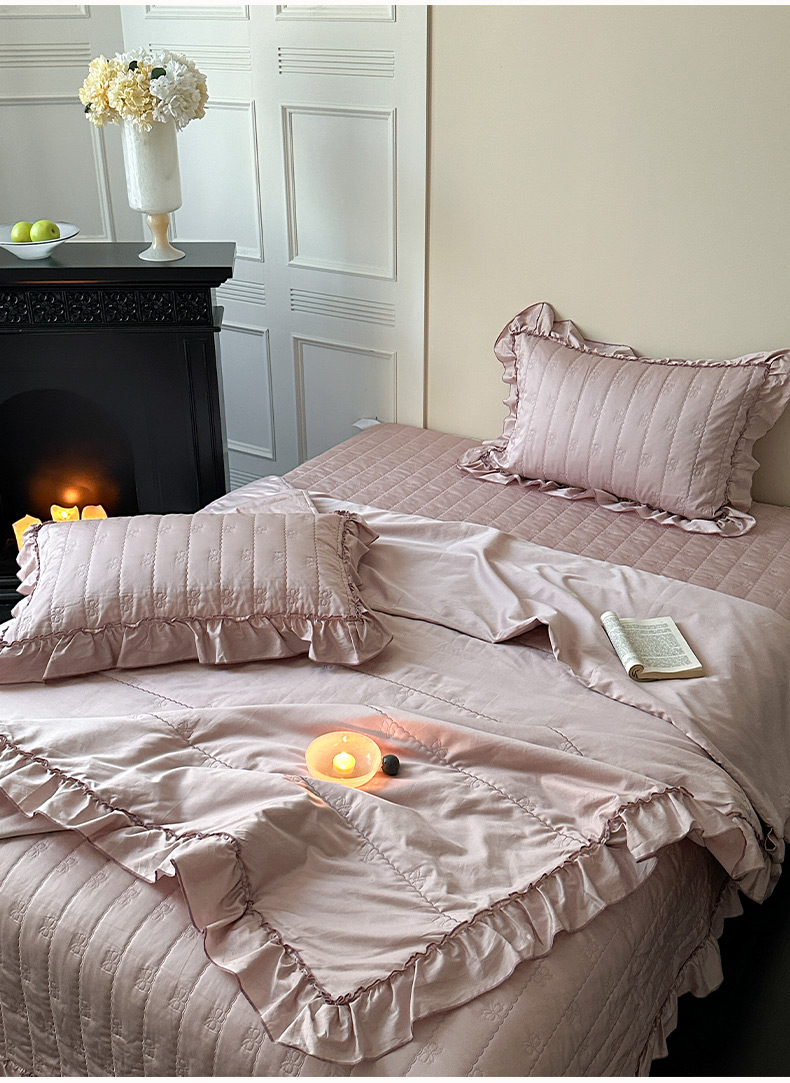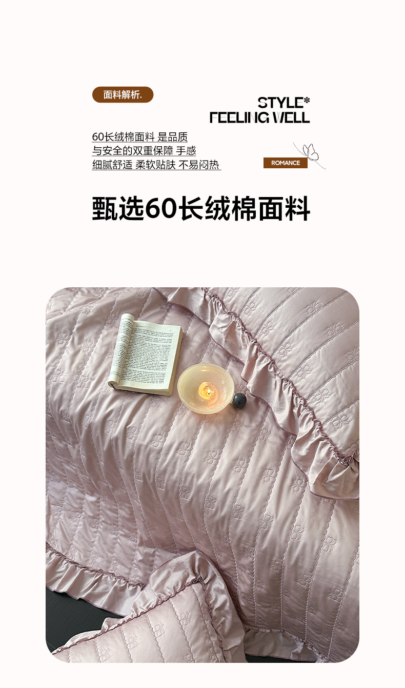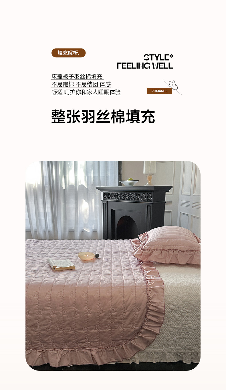 商品名称:琳可家居 2026新款60S长绒棉花边床盖A类双面全棉高温水洗-蝶恋系列 蝶恋-雾粉