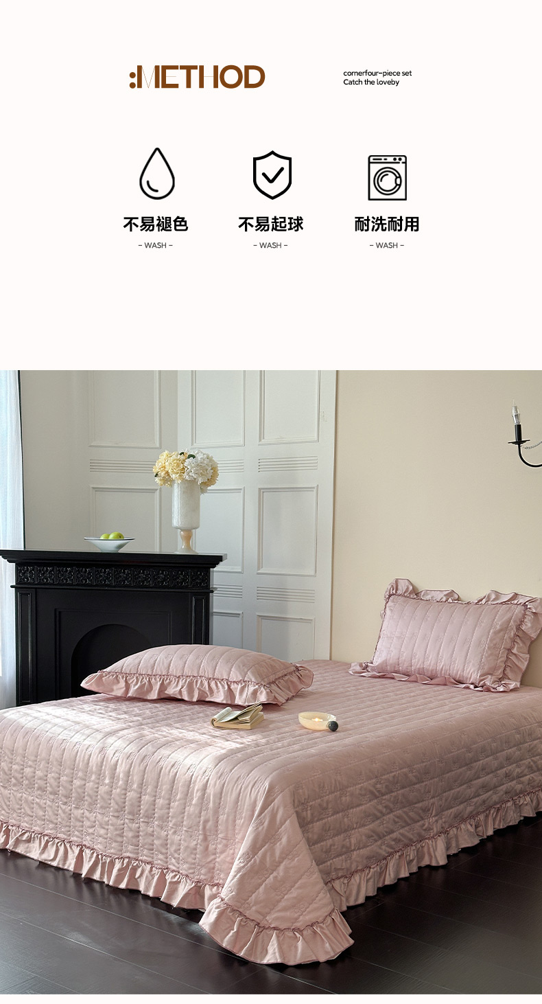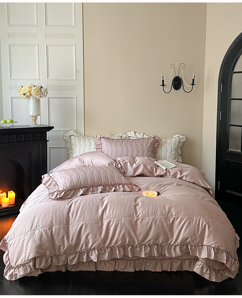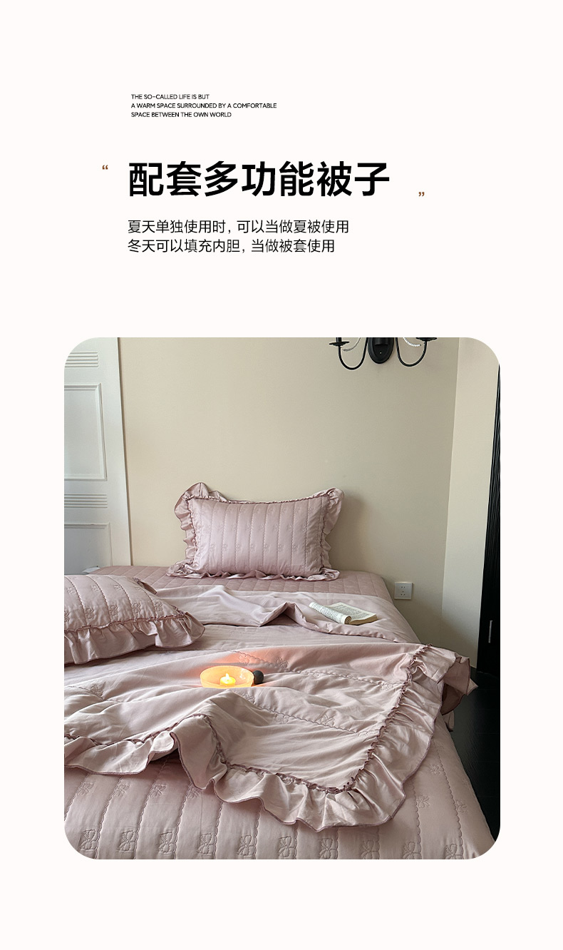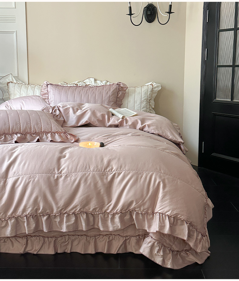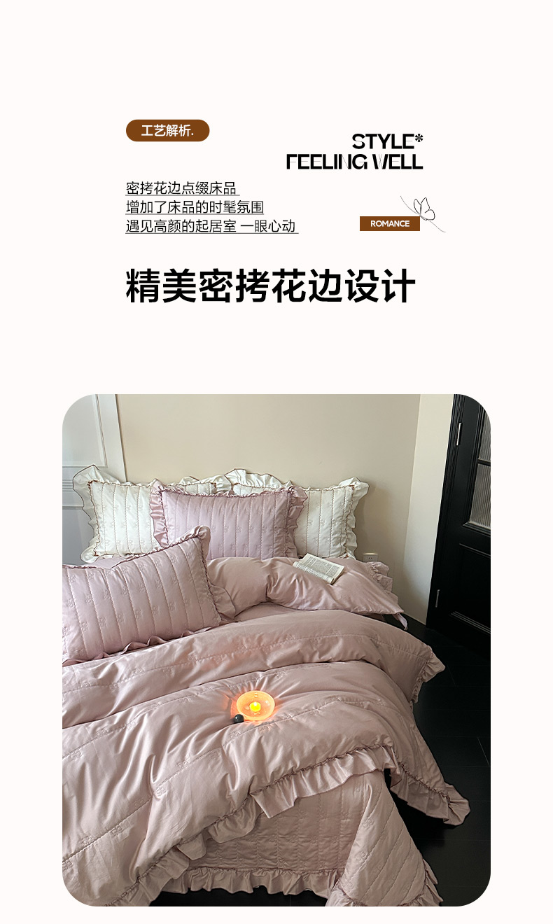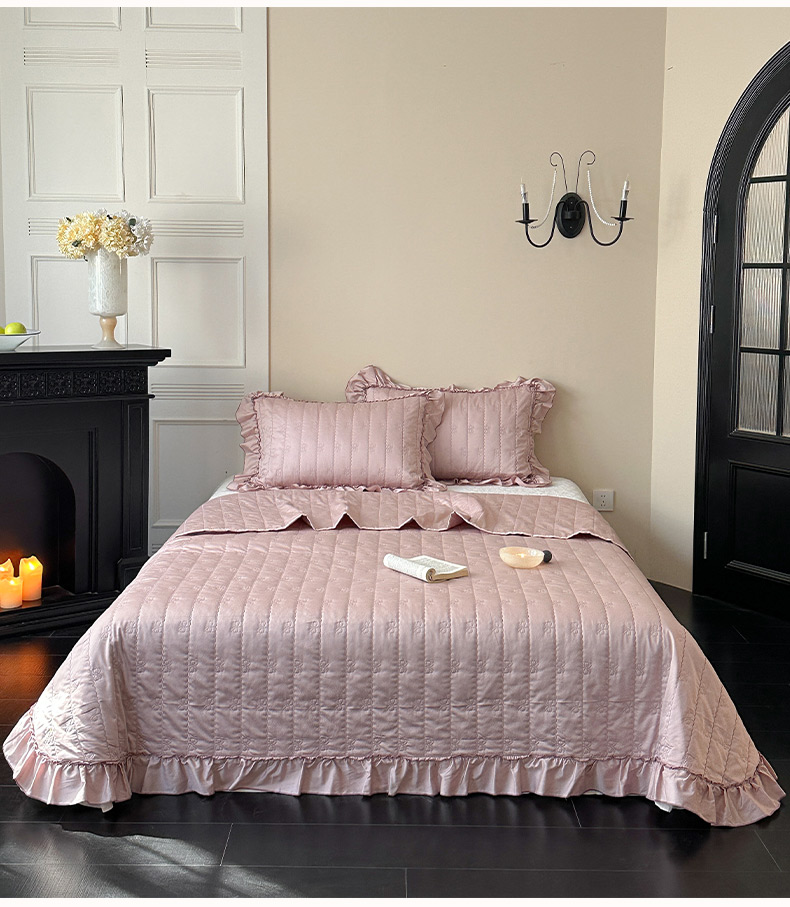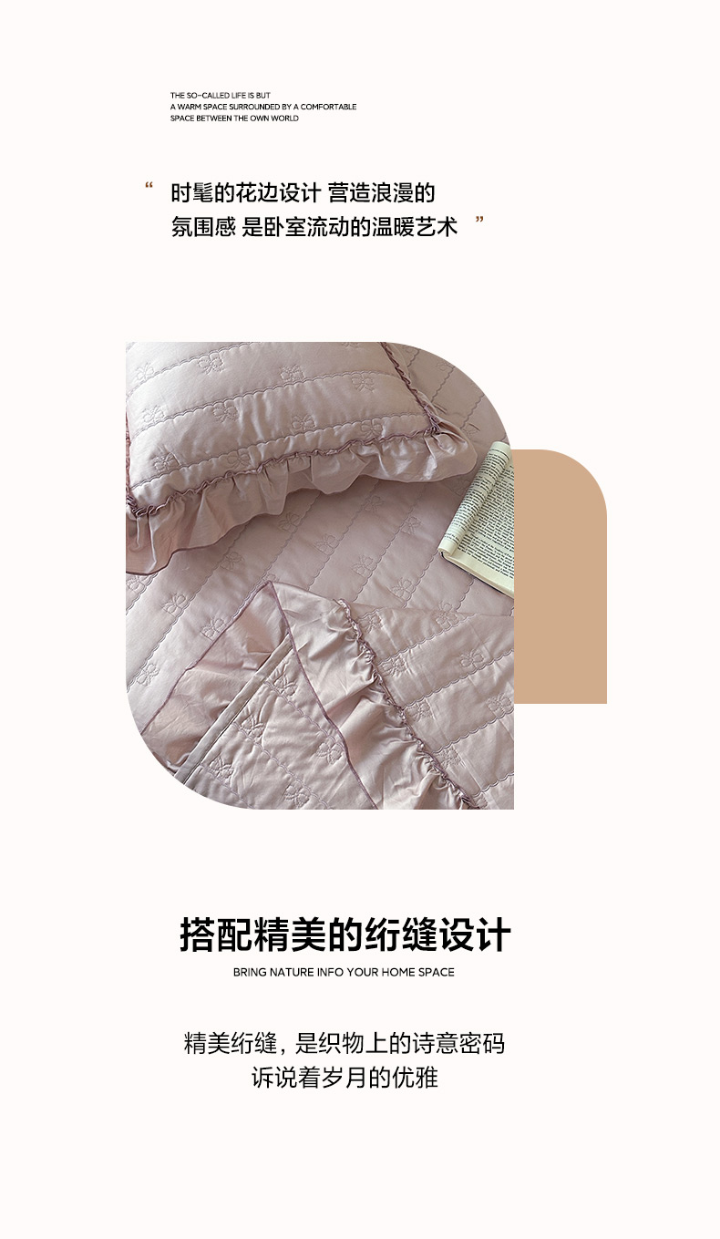商品名称:琳可家居 2026新款60S长绒棉花边床盖A类双面全棉高温水洗-蝶恋系列 蝶恋-雾粉