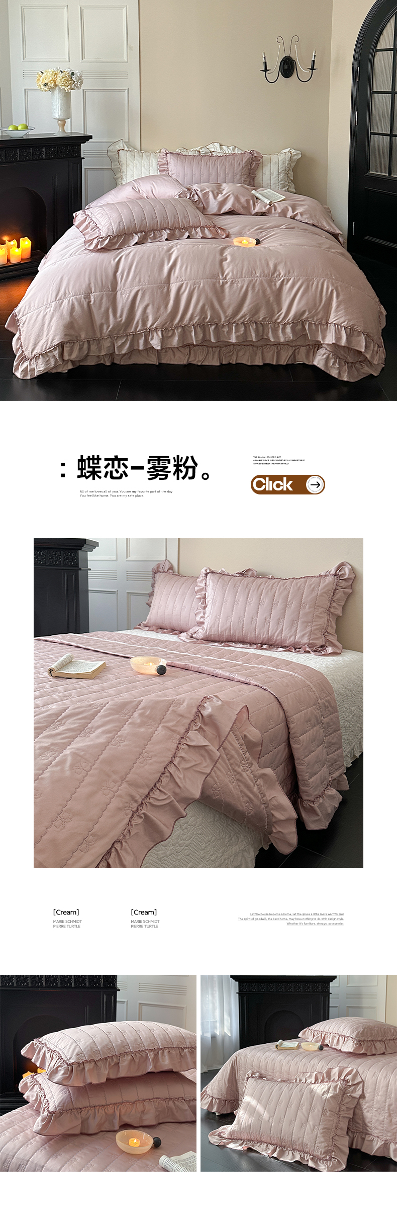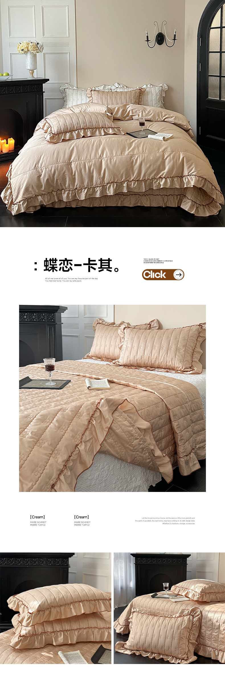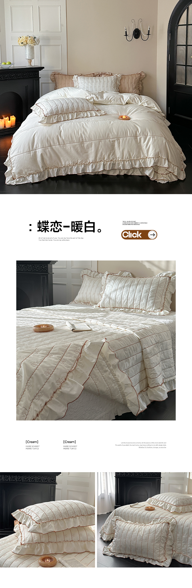 (总)琳可家居 2026新款60S长绒棉花边床盖A类双面全棉高温水洗-蝶恋系列,蝶恋-暖白,蝶恋-卡其,蝶恋-雾粉,组合