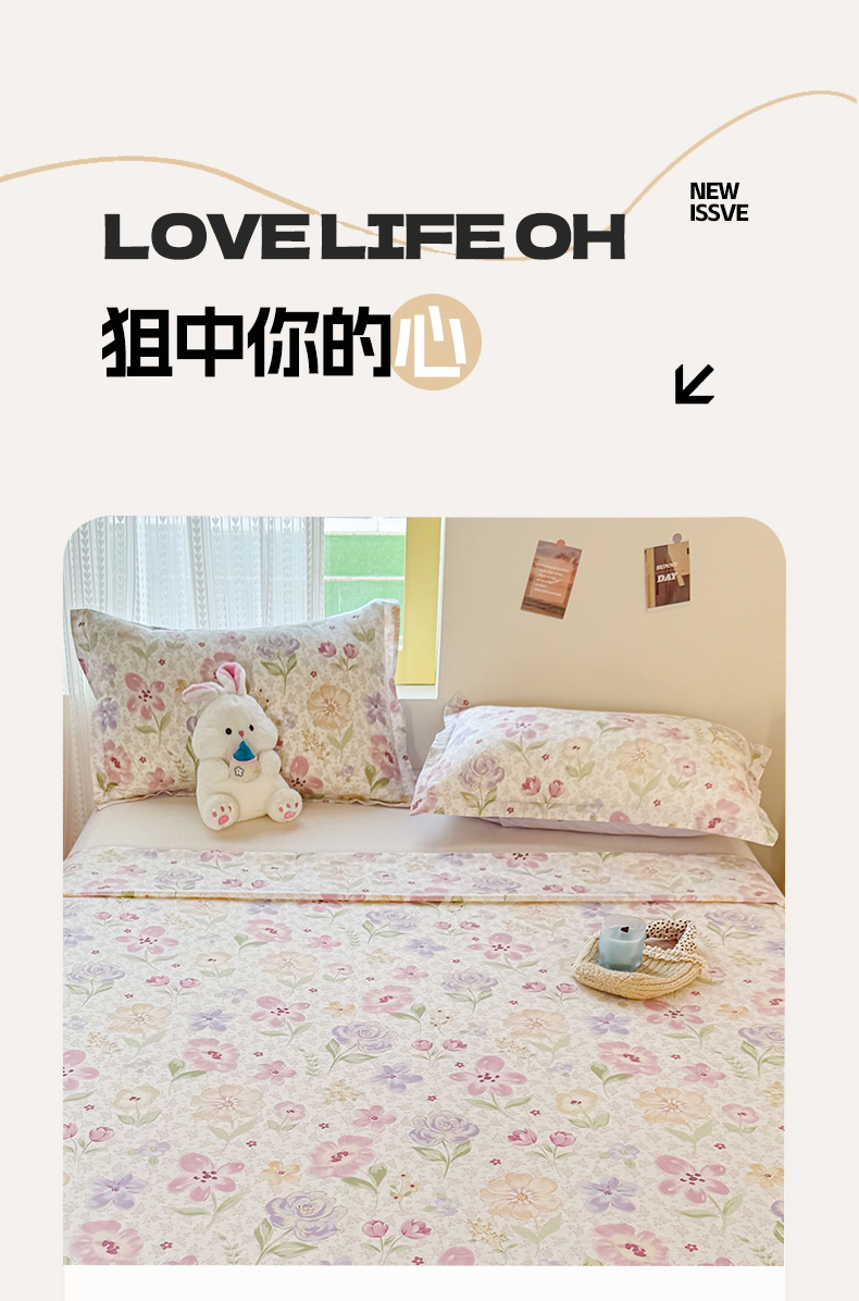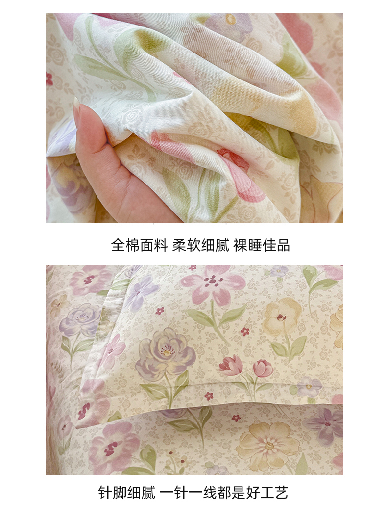 (总)尚帛 2025新款高支高密全棉小清新碎花少女心枕套系带系列四件套--提供买家秀,花柔香,墨染芳华,暖阳小花,蔷薇织梦,温柔花海,芋泥樱桃