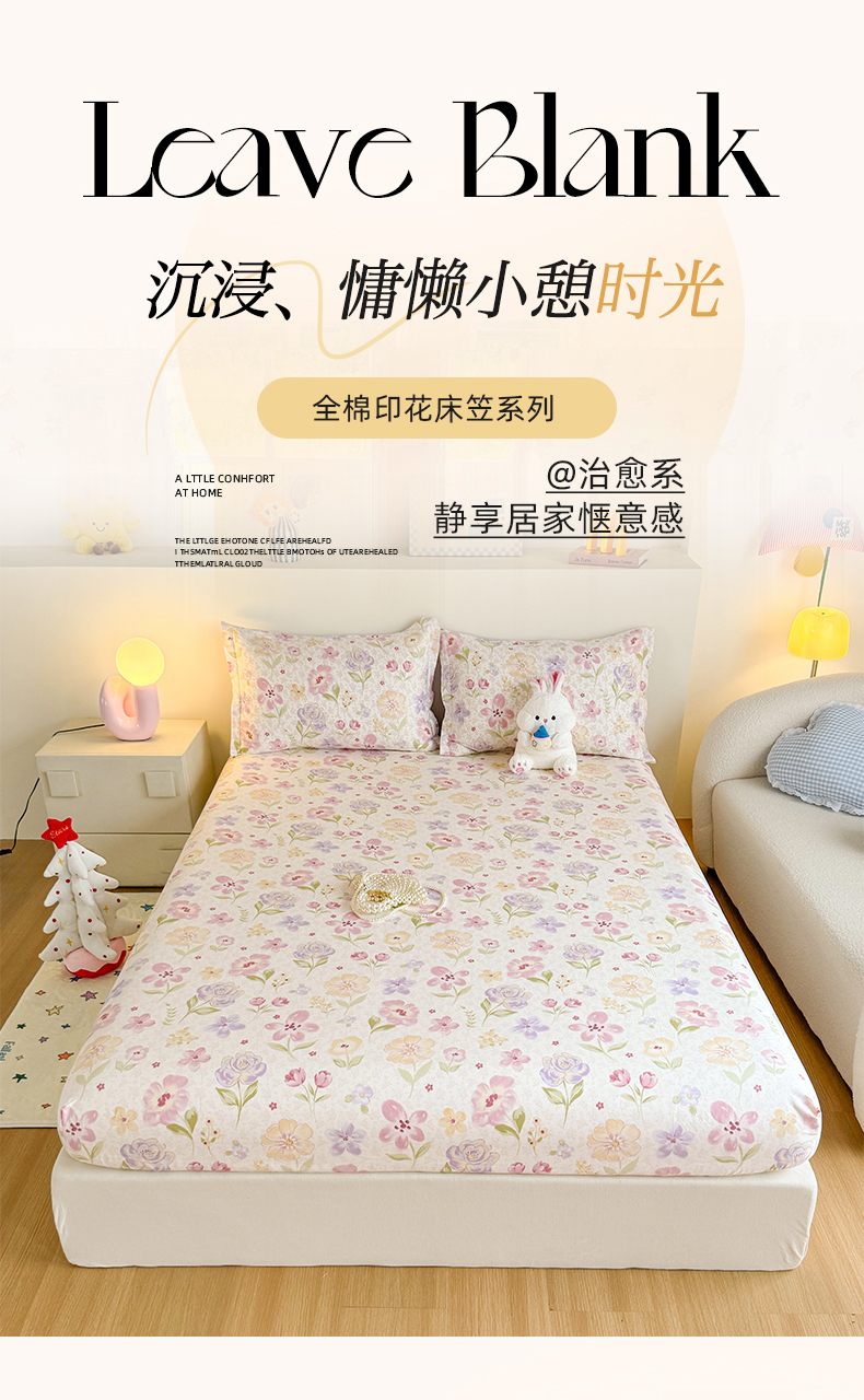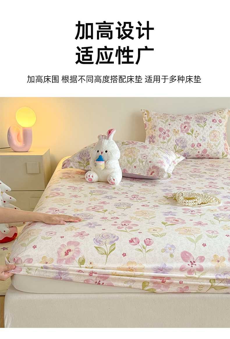 尚帛 2026新款全棉品质喷气印花爆款四件套 多规格套件 单品系列-单床笠 甜心花朵