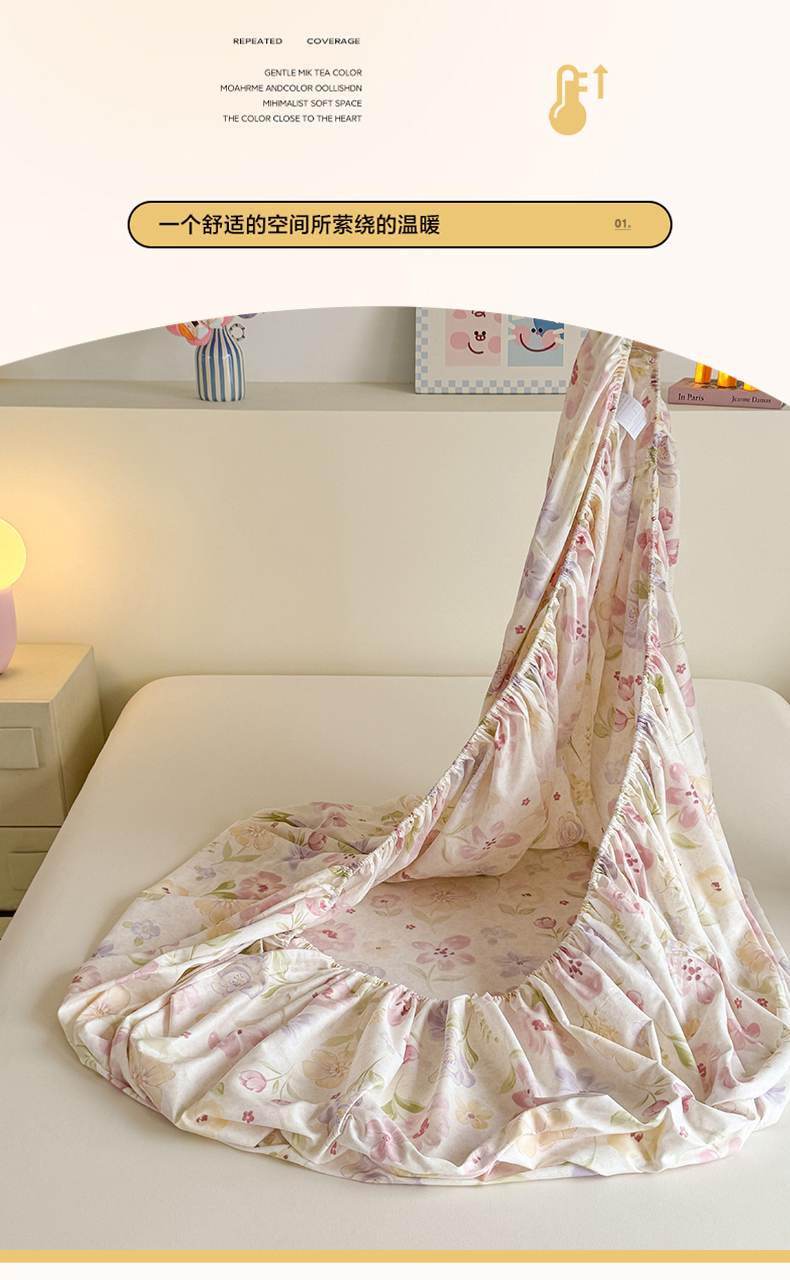 • 91家纺网 家纺一手货源 找家纺 尚帛 2026新款全棉品质喷气印花爆款四件套 多规格套件 单品系列-单床笠 甜心花朵