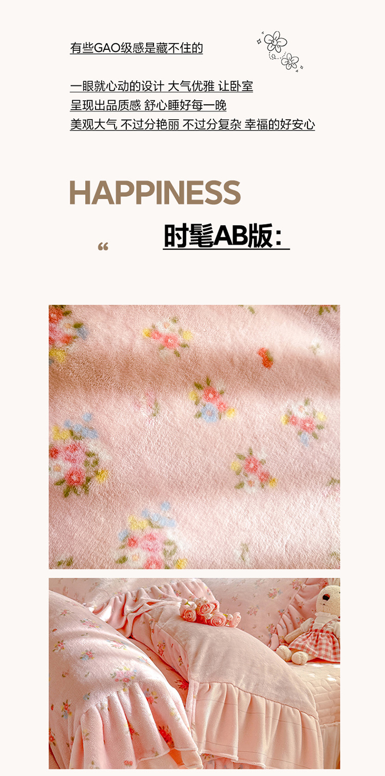 商品名称:苏米娜2025新款高克重11斤重直播热款双层蕾丝花边全消光牛奶绒印花床盖四件套单床盖床盖三件套 郁见美好