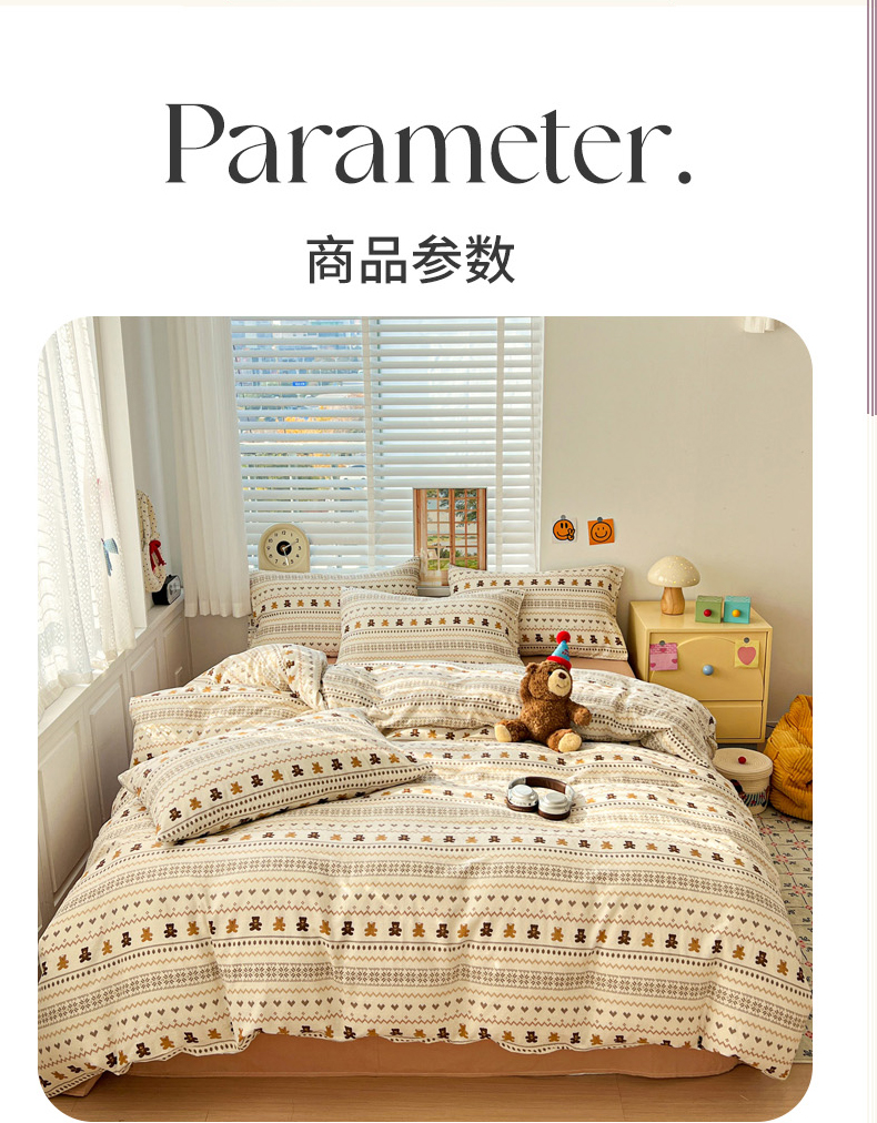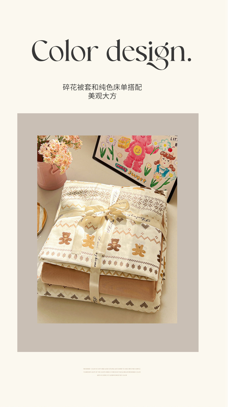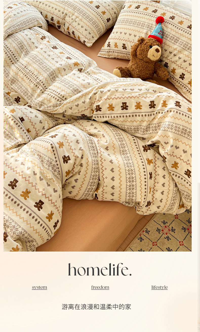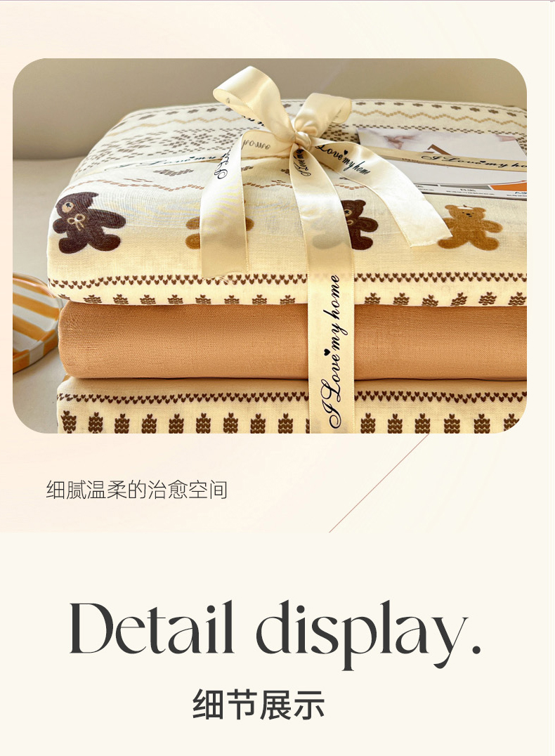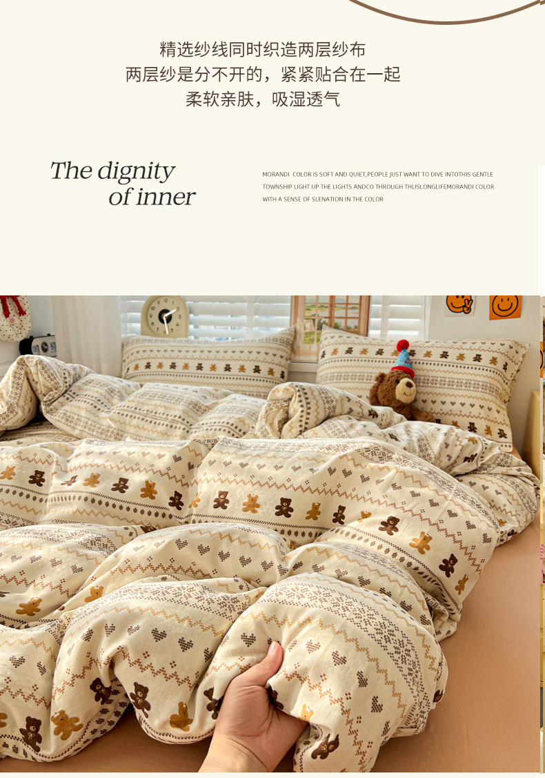 当前位置: 91家纺网 > 商品网购 > 床品套件 > 四件套 > 双层纱四件套 > 麦伦家居 2026春夏新品全棉有氧双层纱印花系列简约款四件套 费尔岛小熊