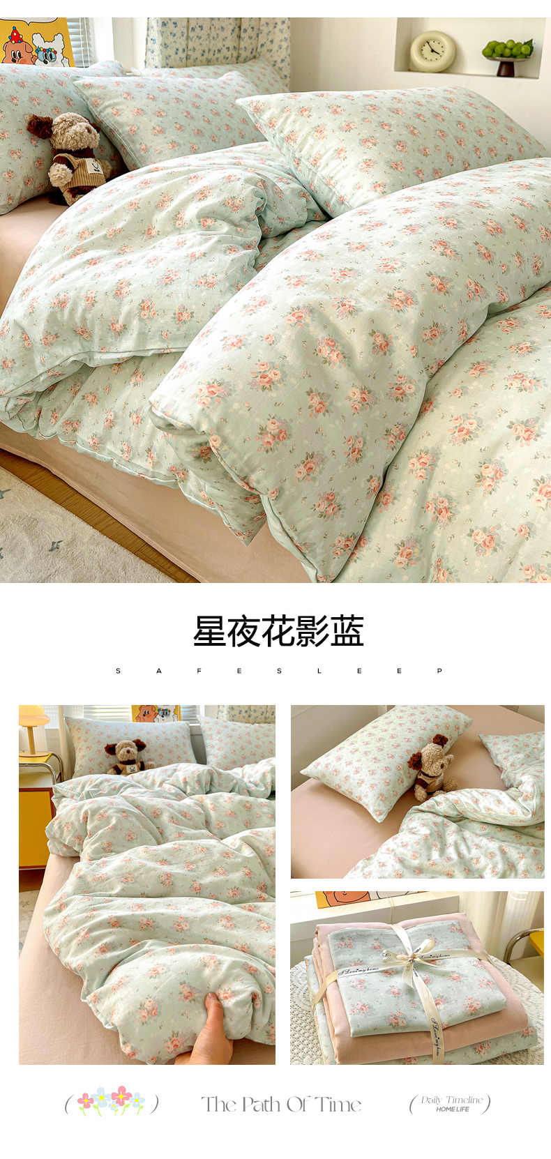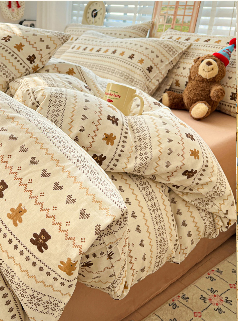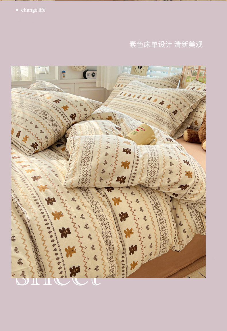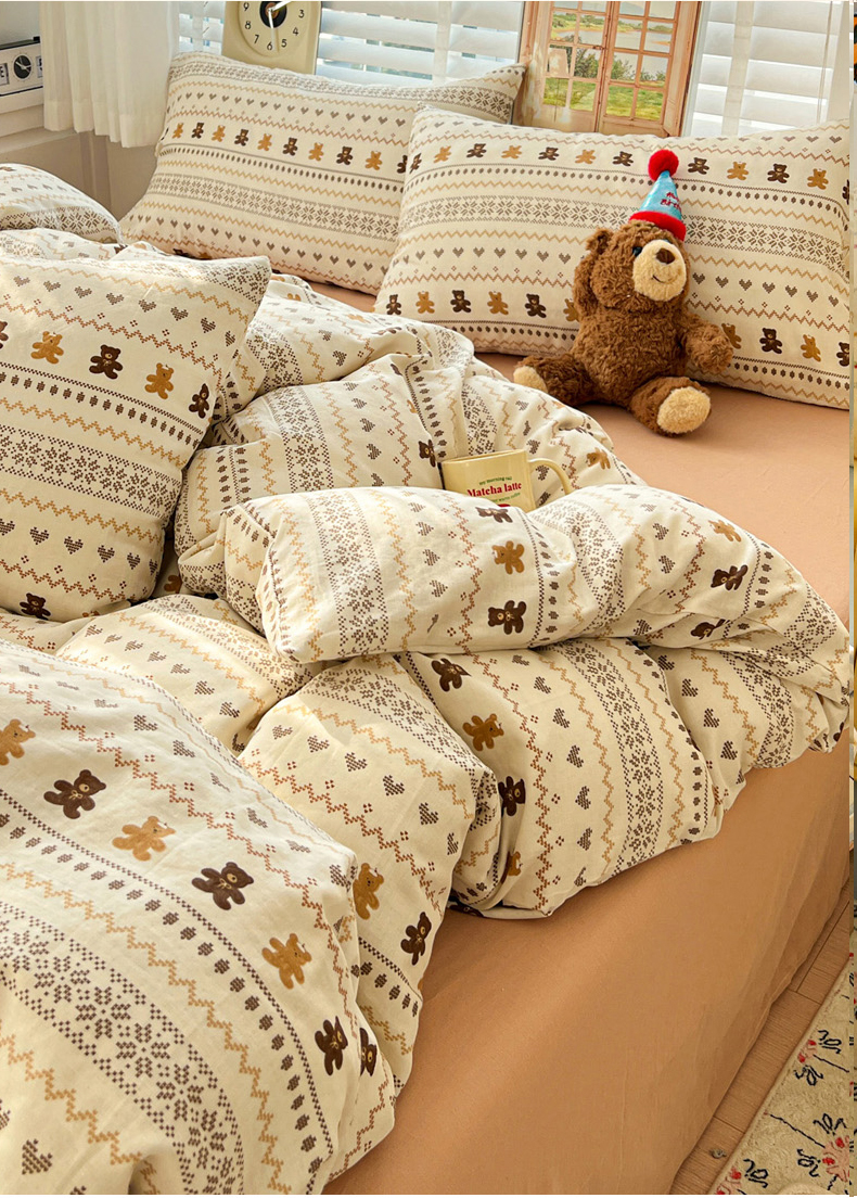 当前位置: 91家纺网 > 商品网购 > 床品套件 > 四件套 > 双层纱四件套 > 麦伦家居 2026春夏新品全棉有氧双层纱印花系列简约款四件套 费尔岛小熊