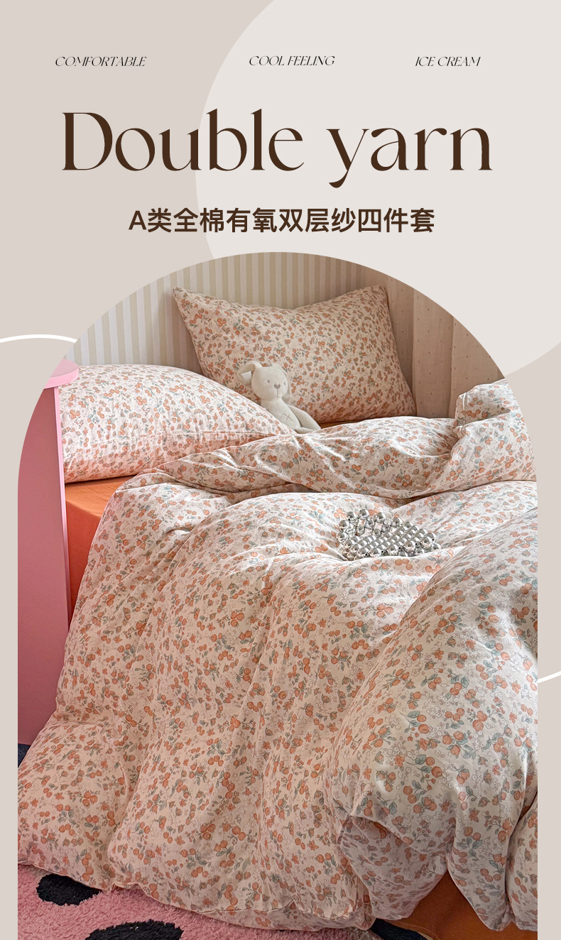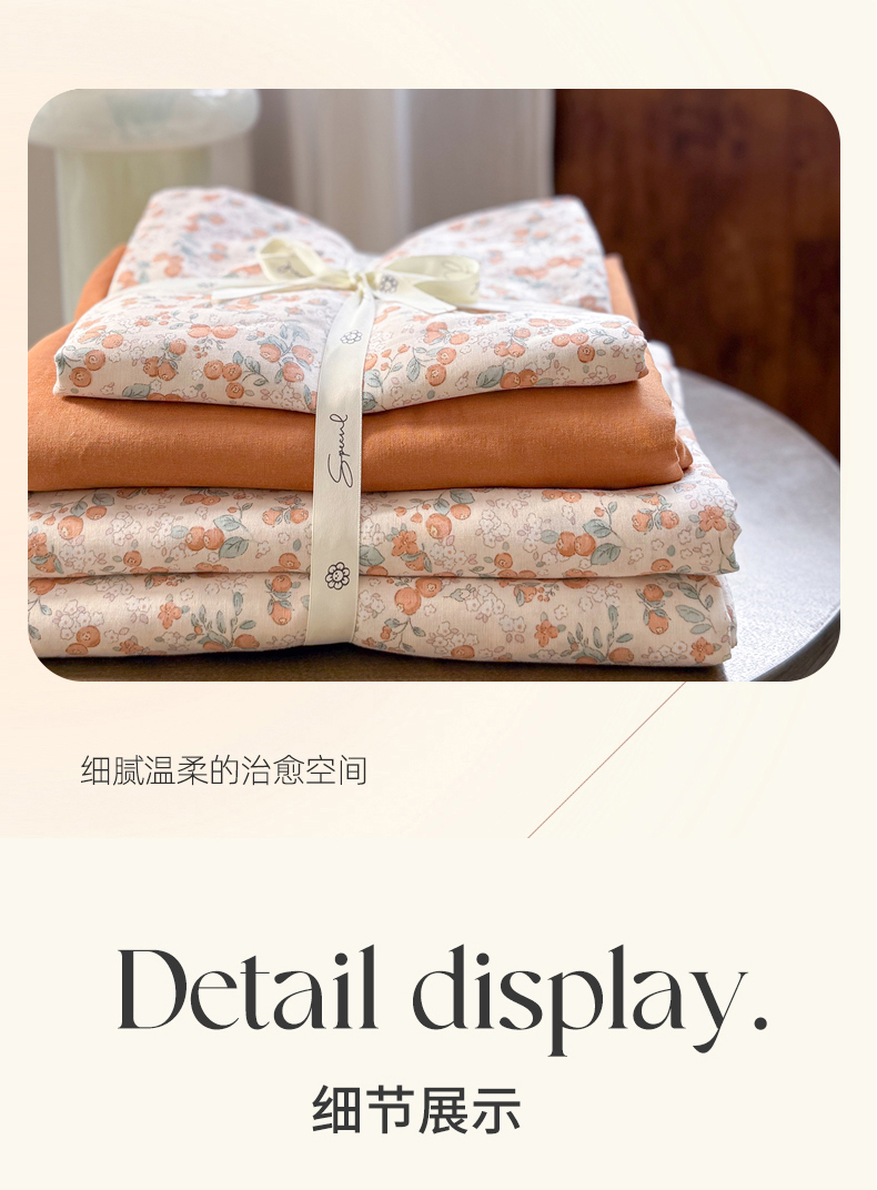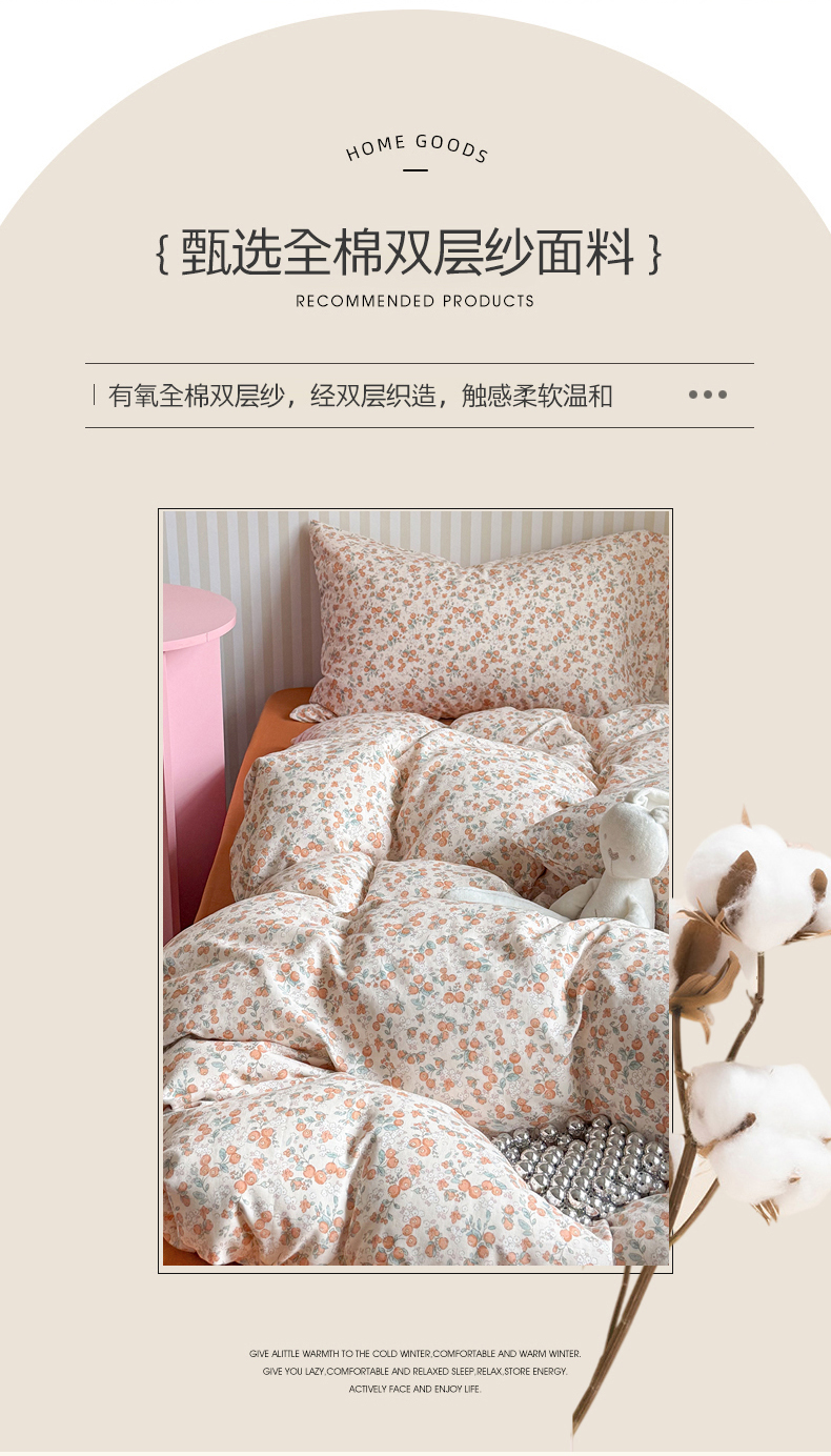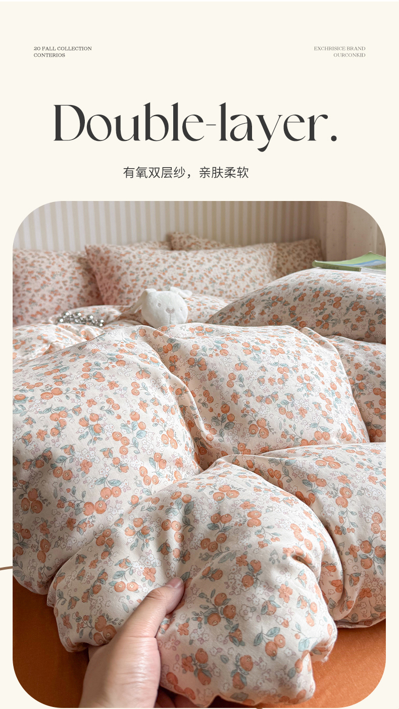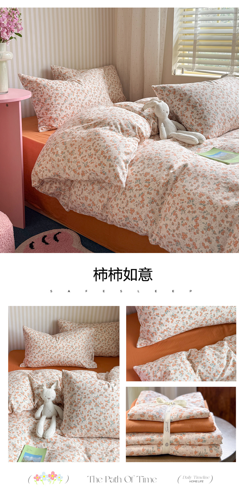 当前位置: 91家纺网 > 商品网购 > 床品套件 > 四件套 > 双层纱四件套 > 麦伦家居 2026春夏新品全棉有氧双层纱印花系列简约款四件套 柿柿如意