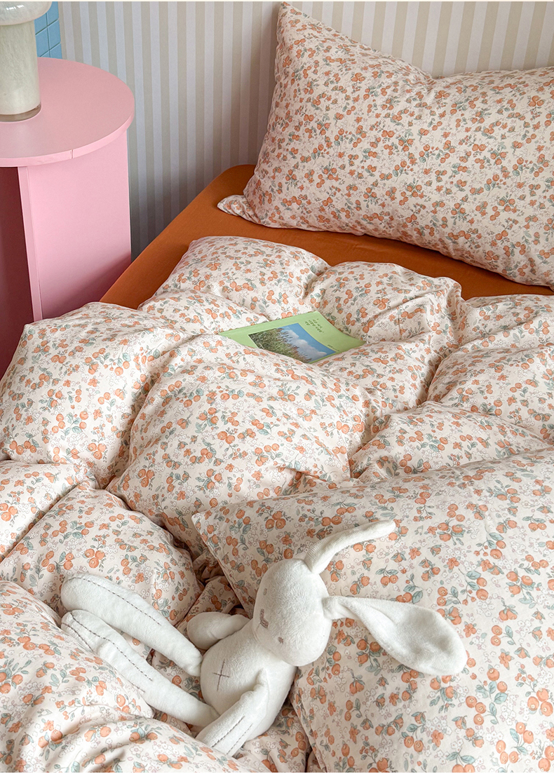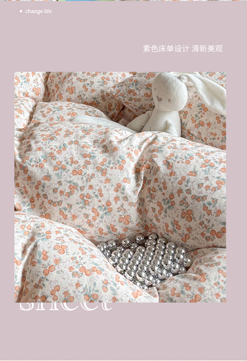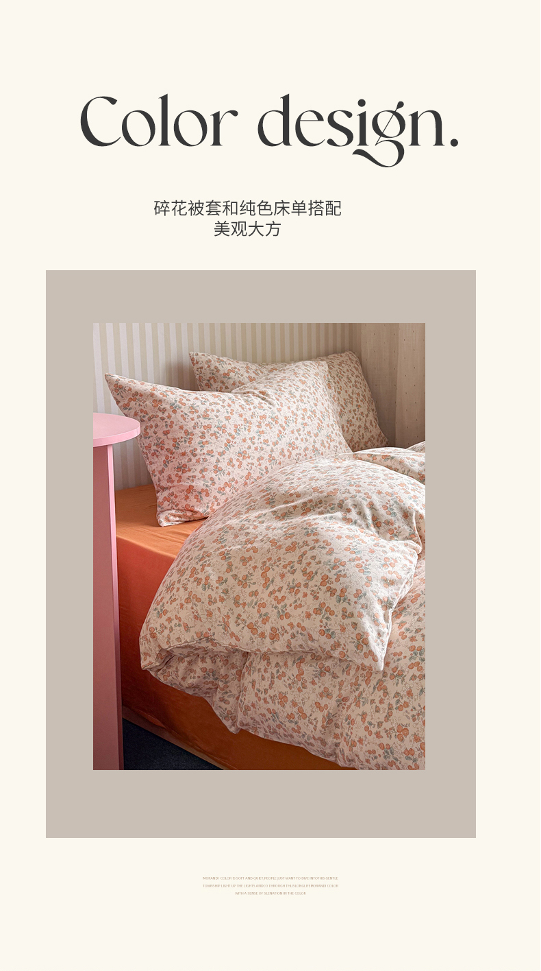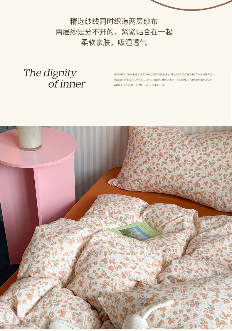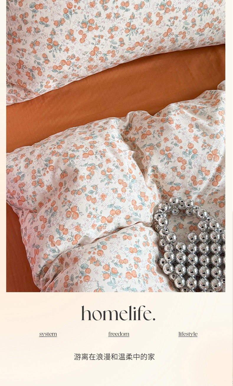 当前位置: 91家纺网 > 商品网购 > 床品套件 > 四件套 > 双层纱四件套 > 麦伦家居 2026春夏新品全棉有氧双层纱印花系列简约款四件套 柿柿如意