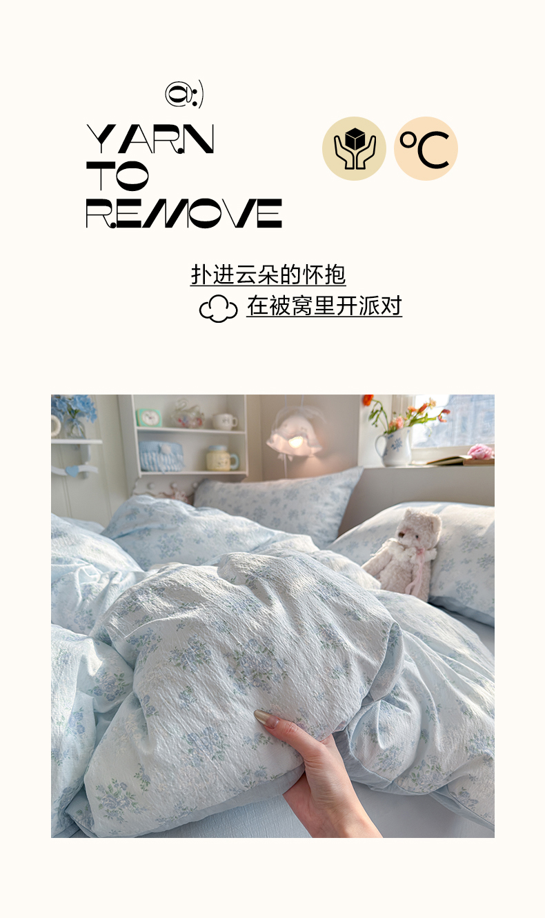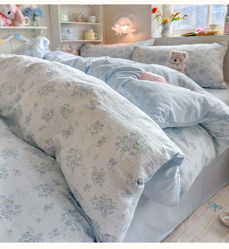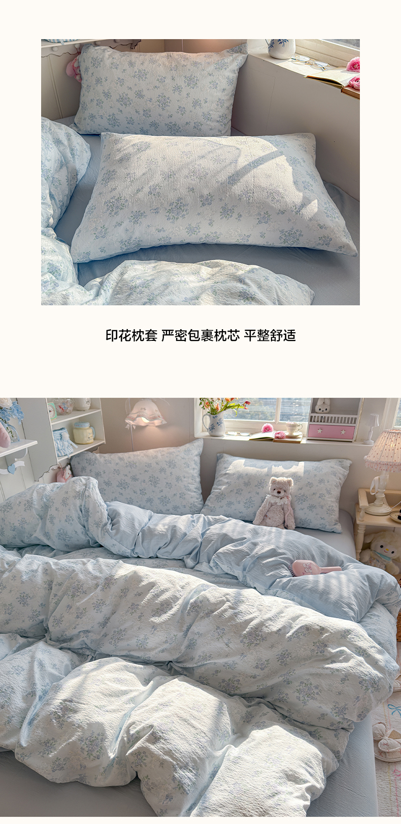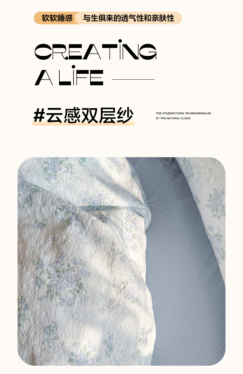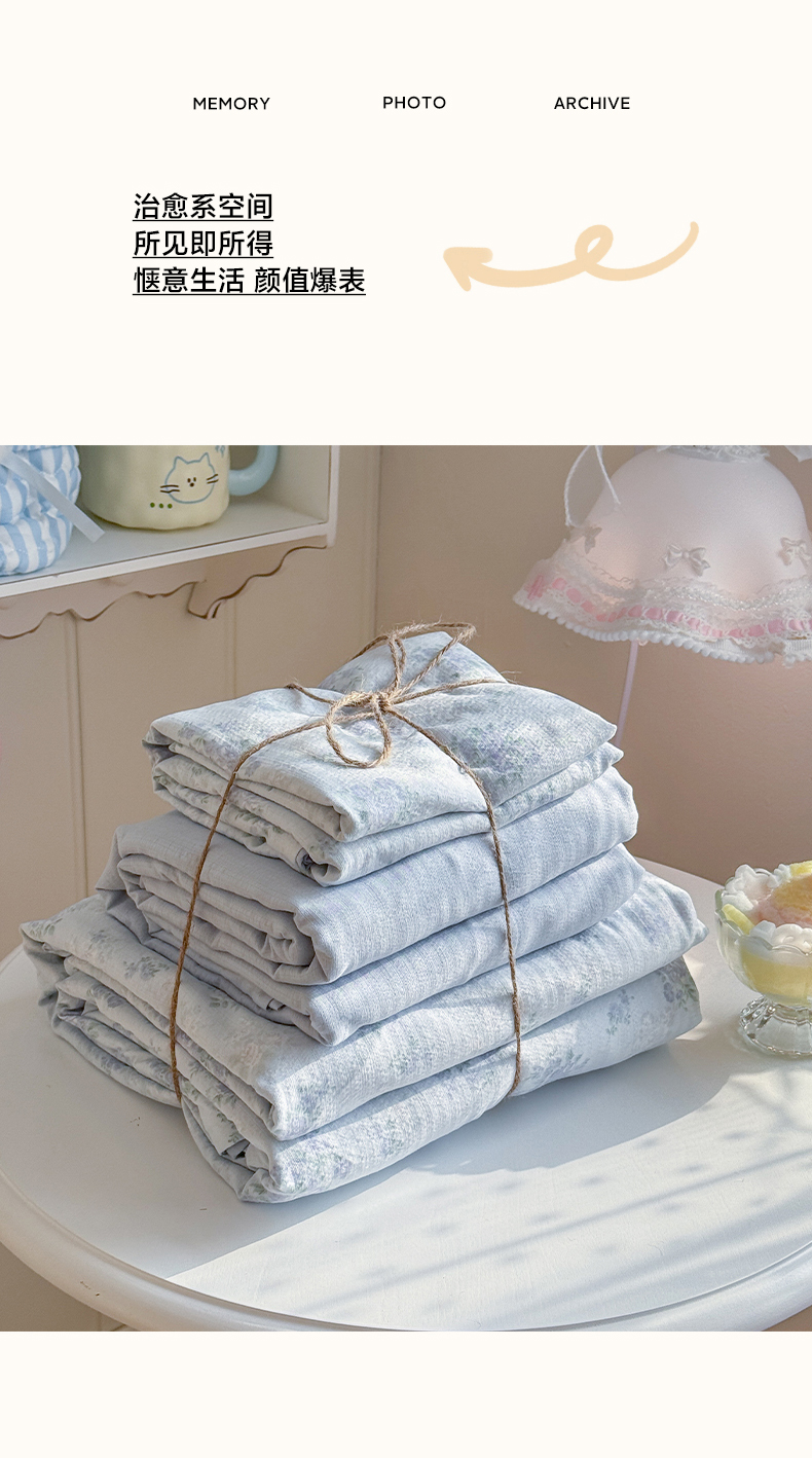 当前位置: 91家纺网 > 商品网购 > 床品套件 > 四件套 > 双层纱四件套 > 罗亿家纺 2026新款小清新云感双层纱木棉四件套系列(小红书热款推荐) 蓝萱
