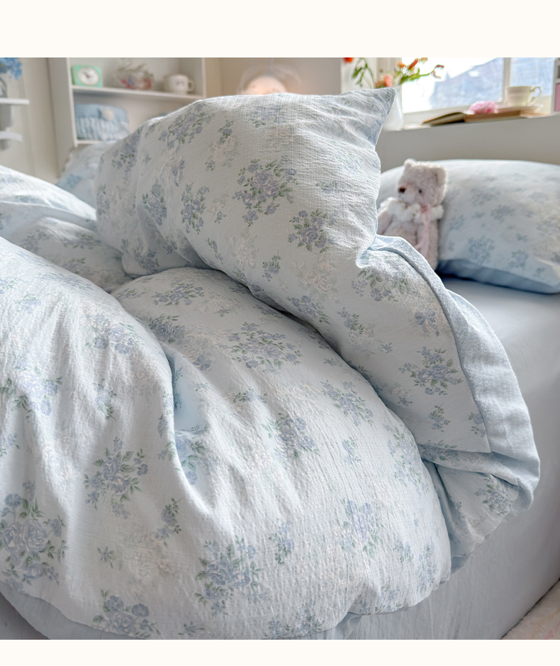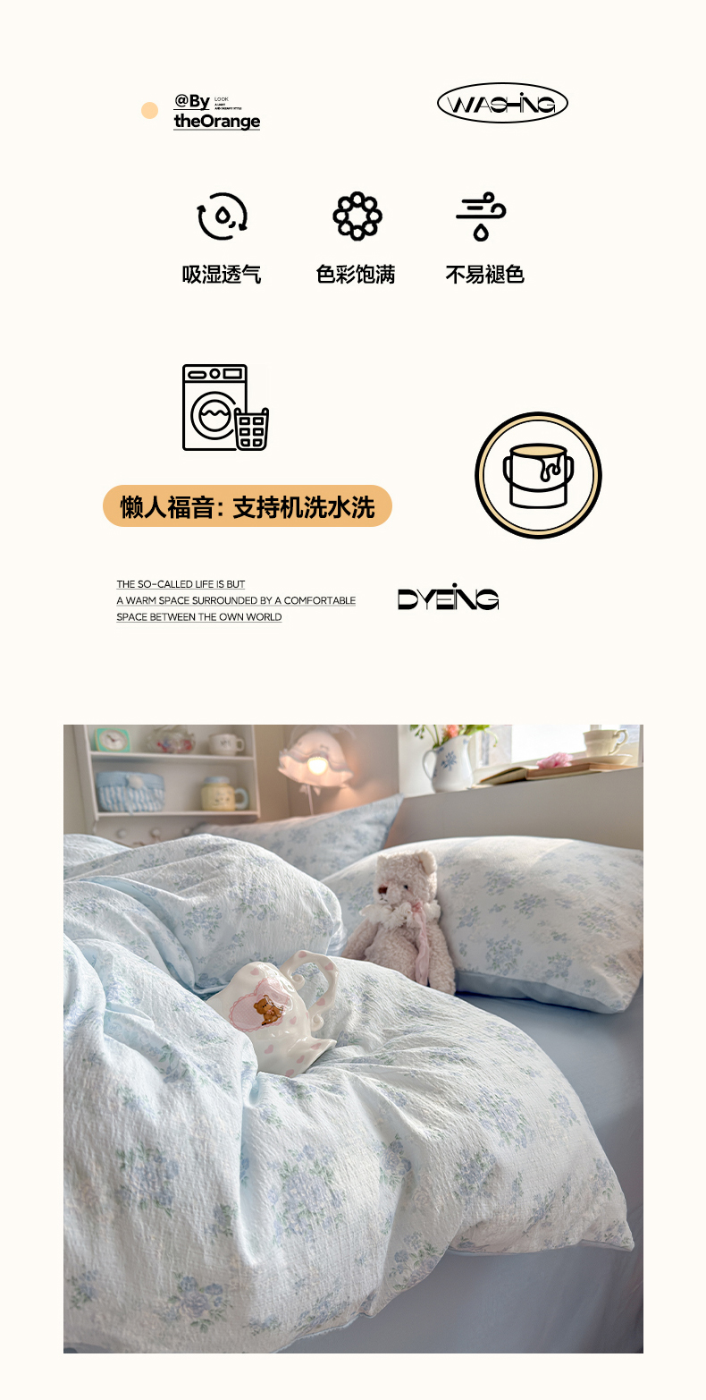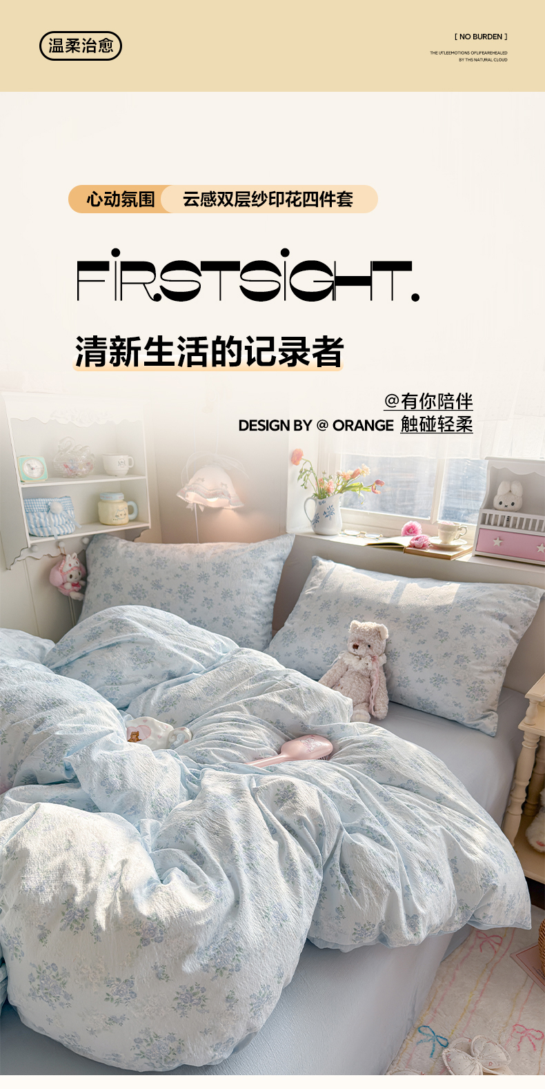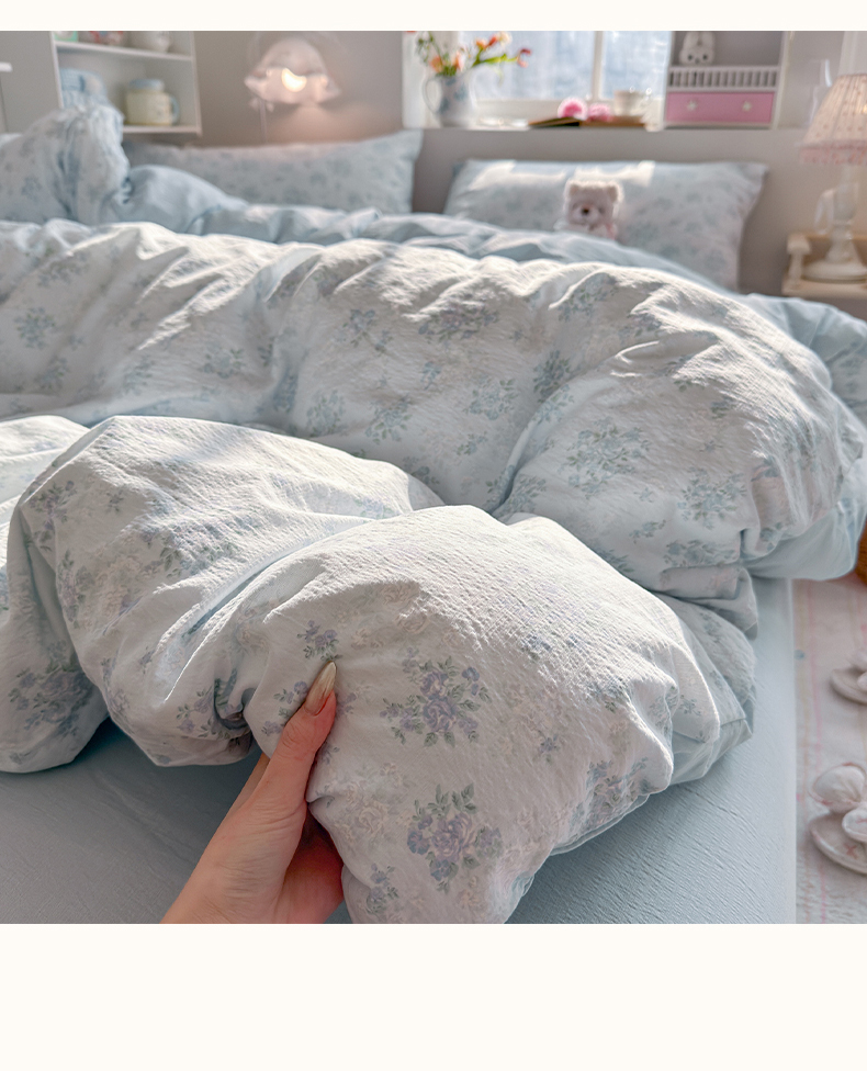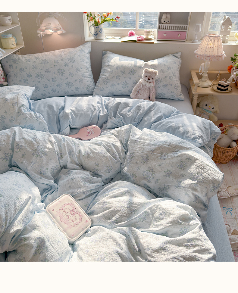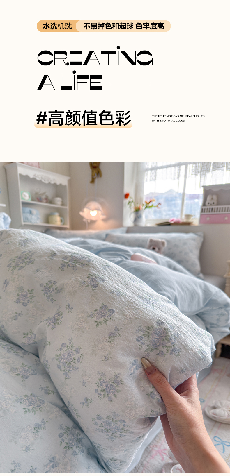 当前位置: 91家纺网 > 商品网购 > 床品套件 > 四件套 > 双层纱四件套 > 罗亿家纺 2026新款小清新云感双层纱木棉四件套系列(小红书热款推荐) 蓝萱