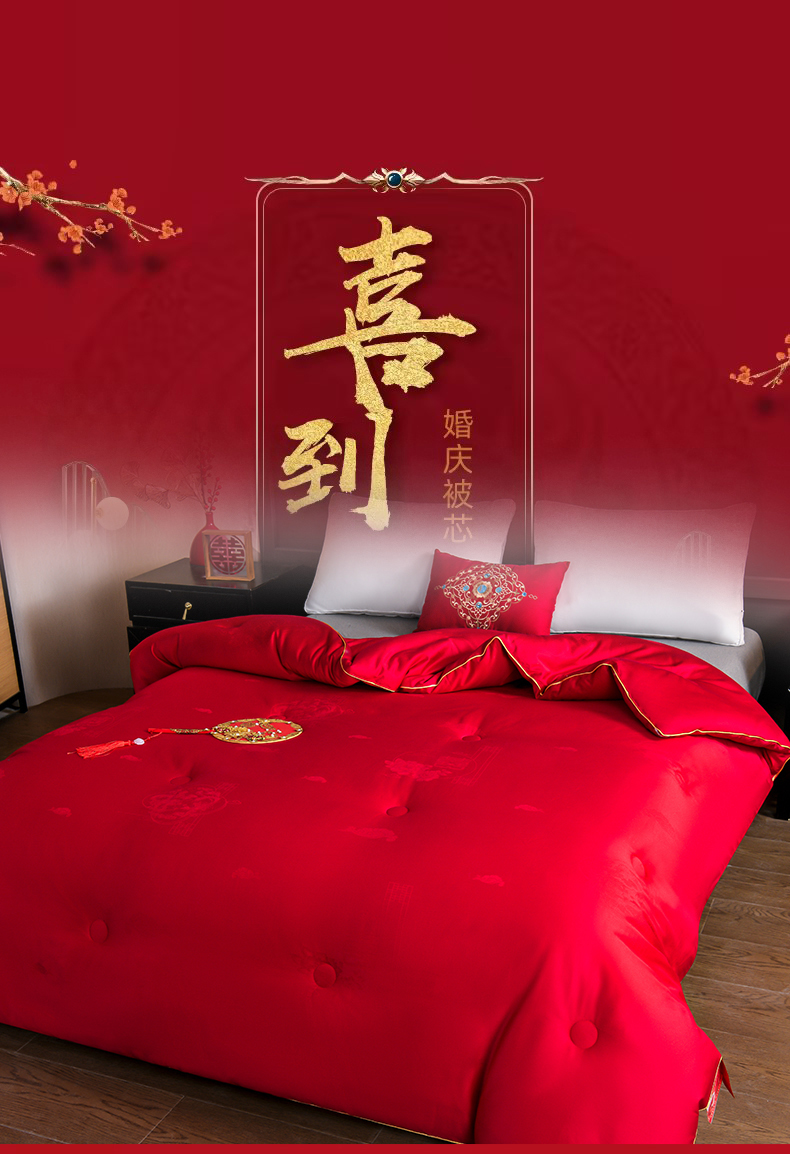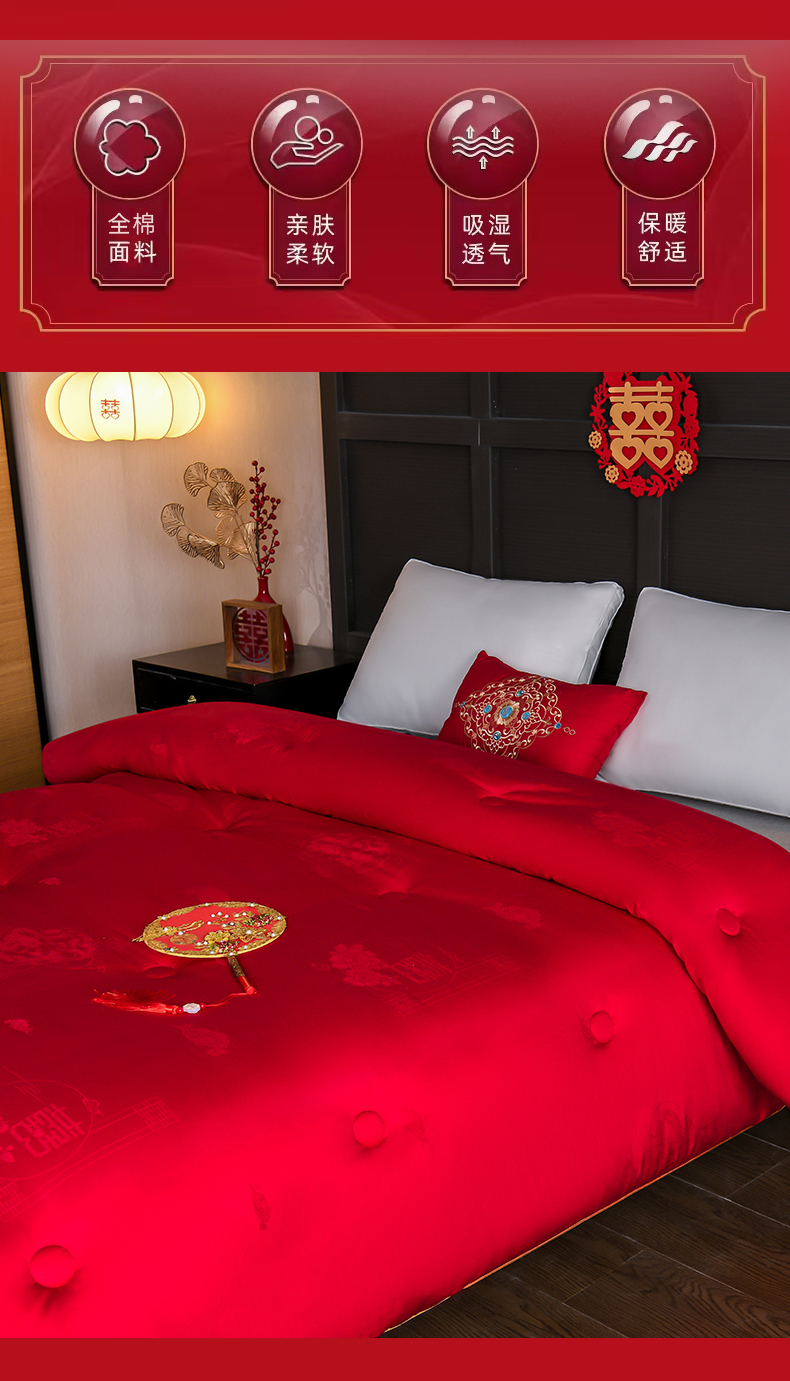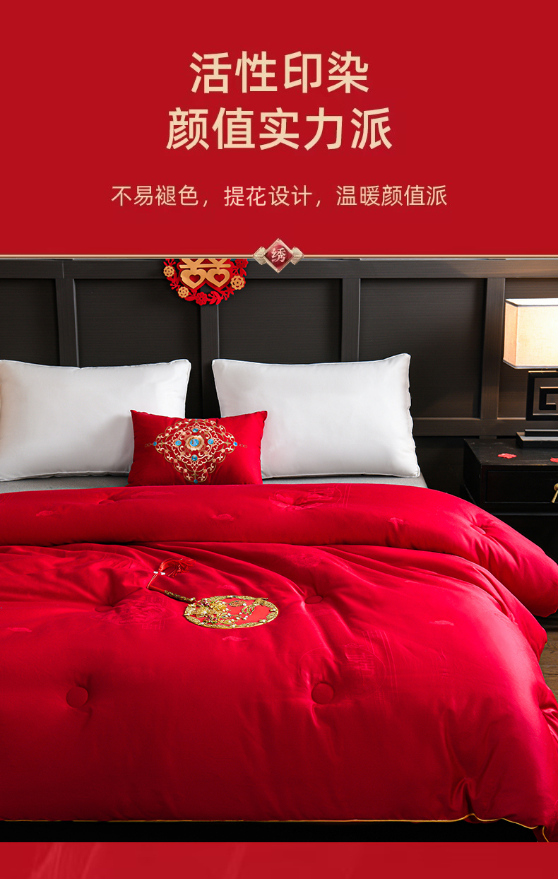 (总)壹张床2025新款婚庆水洗棉大豆冬被,大喜日子