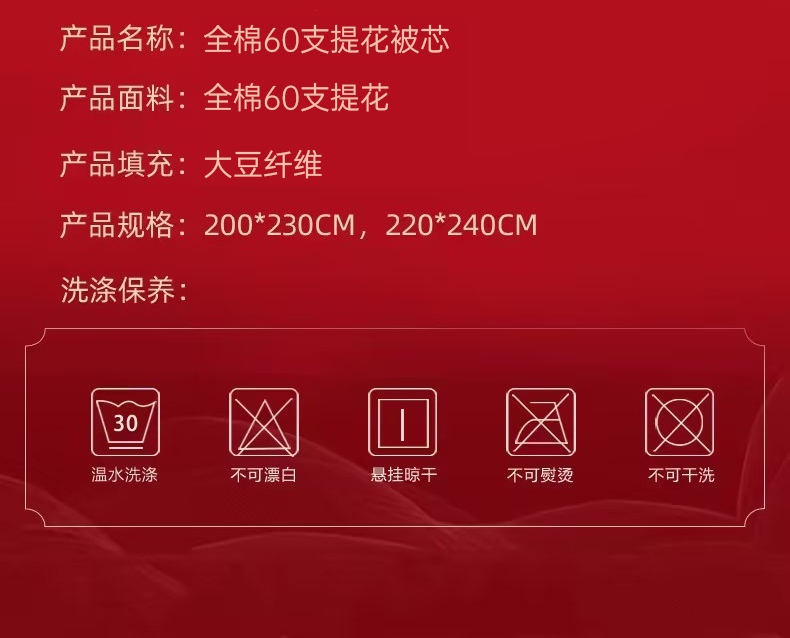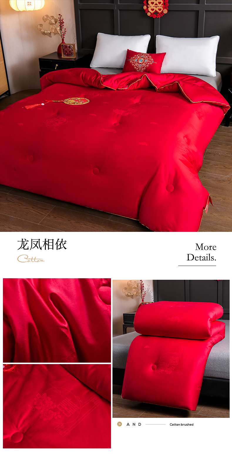 商品名称:壹张床 2026新款全棉纯棉60支提花婚庆喜被冬被被子被芯 龙凤相依