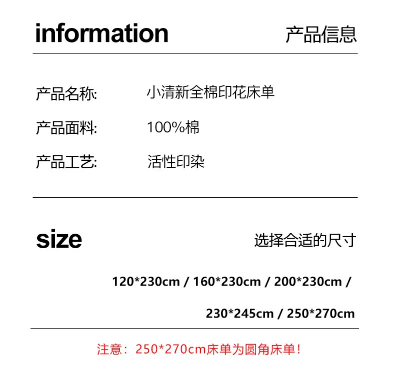 250*270cm加大圆角床单+枕套一对 | ¥54.00 |