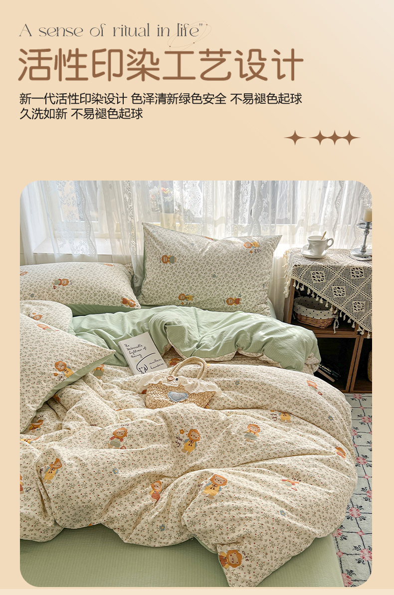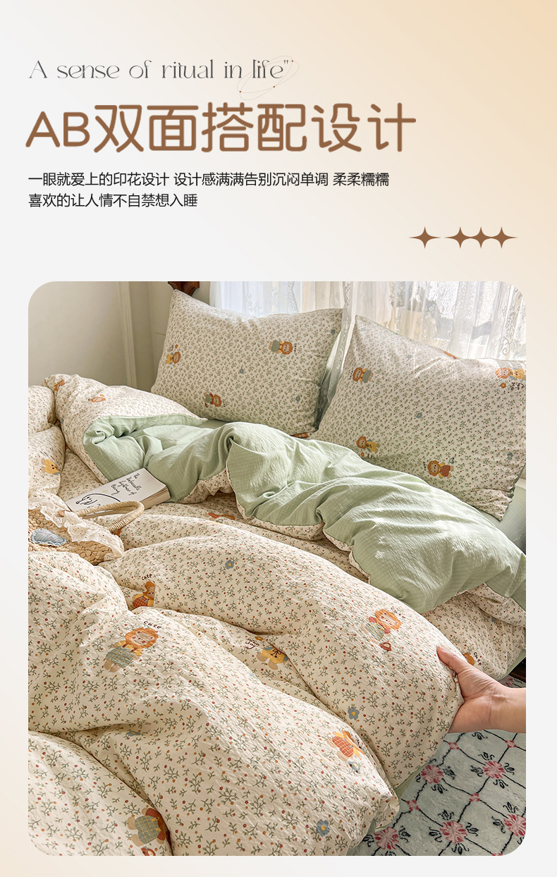 当前位置: 91家纺网 > 商品网购 > 床品套件 > 四件套 > 其它四件套 > 妖妖家纺 2026新款敲可爱的奶呼呼云感双层纱简约四件套系列 花园管理狮