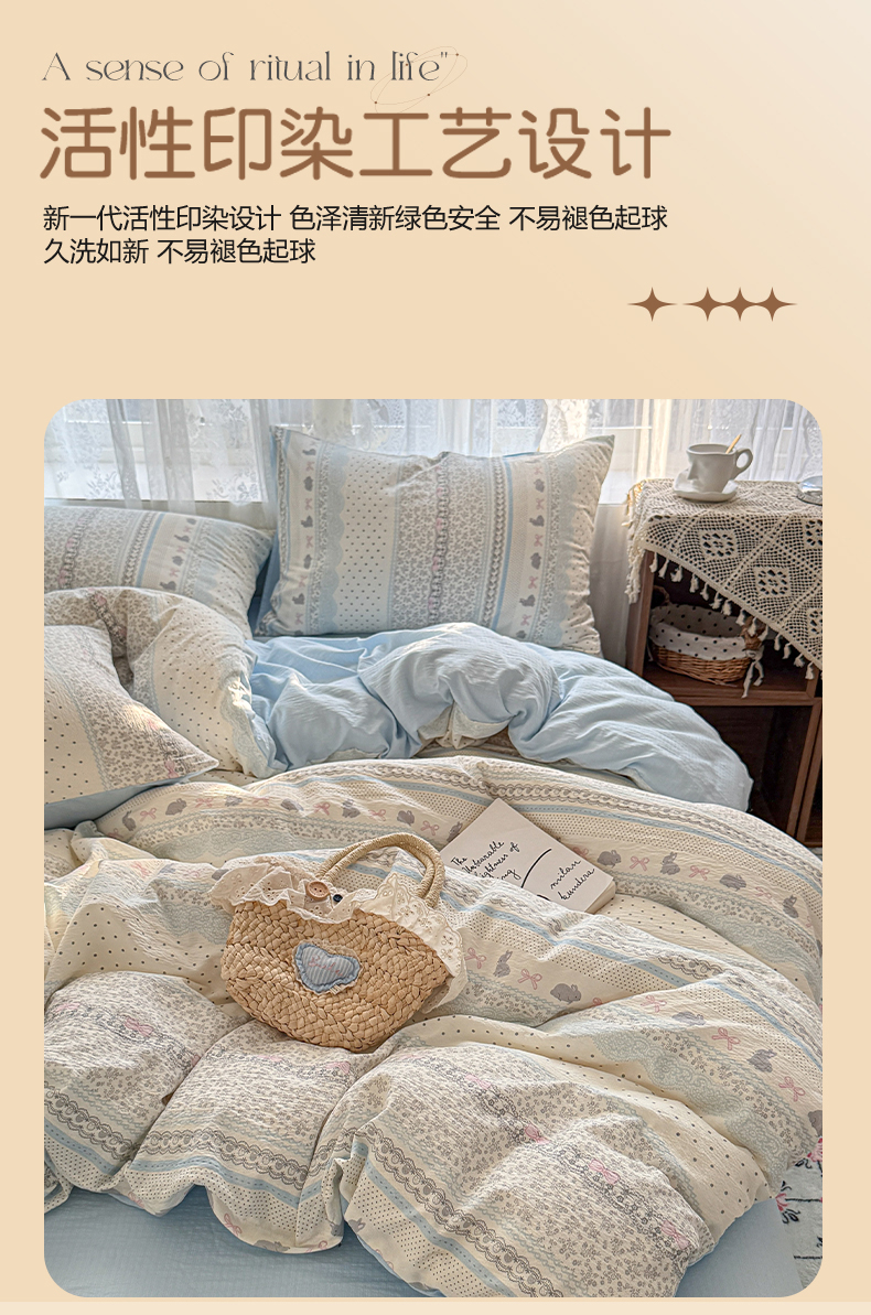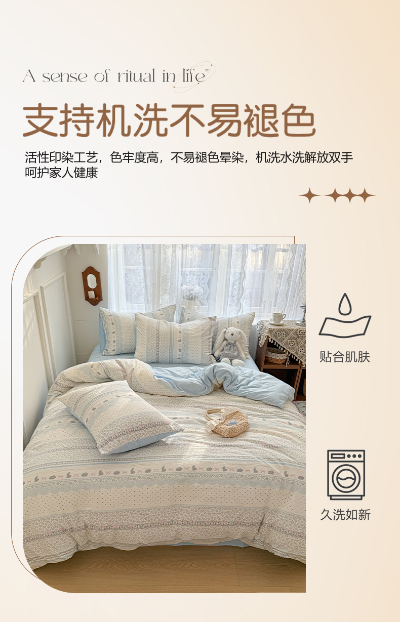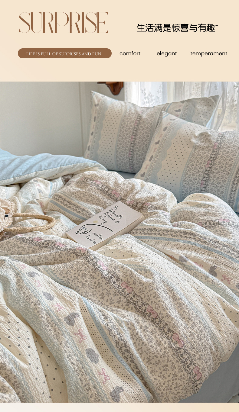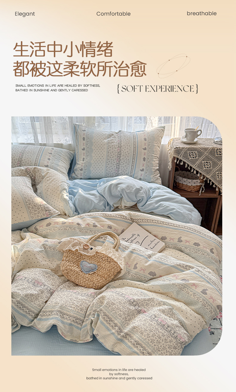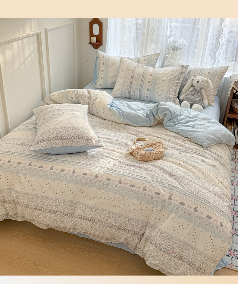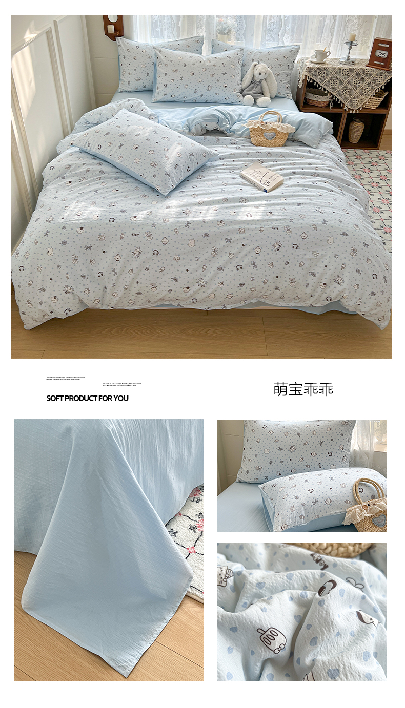 当前位置: 91家纺网 > 商品网购 > 床品套件 > 四件套 > 其它四件套 > 妖妖家纺 2026新款敲可爱的奶呼呼云感双层纱简约四件套系列 小兔啵啵花