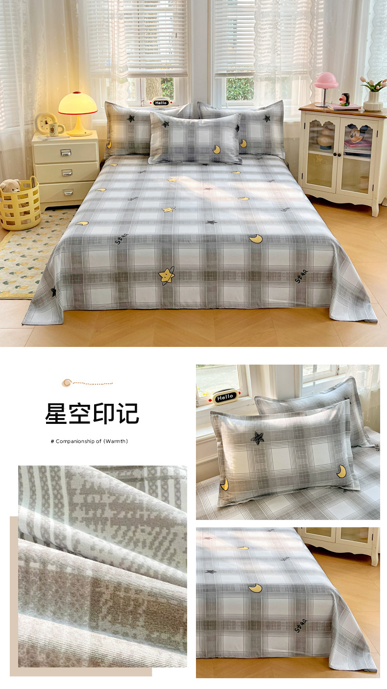 • 91家纺网 家纺一手货源 找家纺 世爵 2026新款全棉纯棉印花小清新单床单单品系列 星空印记