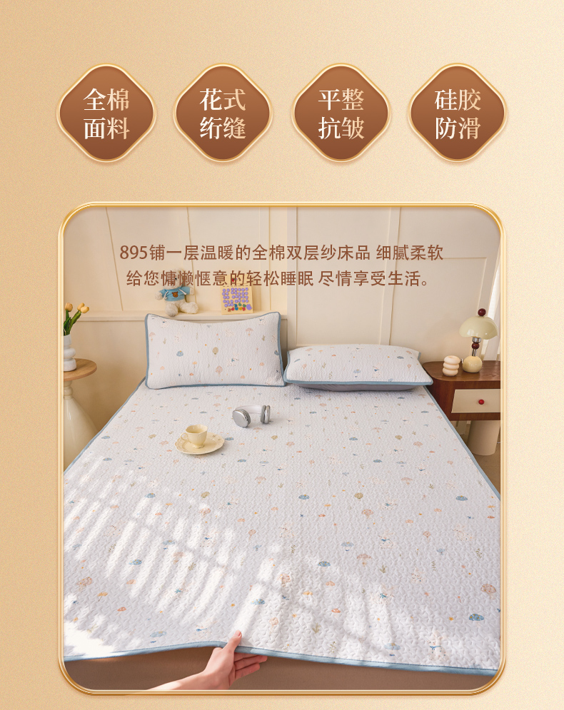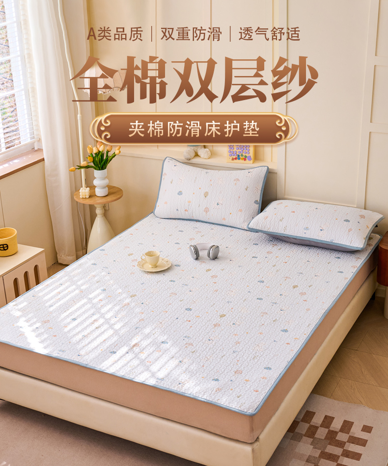 (总)拾小柒 2025年新款全棉双层纱床护垫纯棉防滑床盖床褥子软床垫,爱丽丝花园,彩色杯黄,春色满园,格子狗米,七彩童年,山野小咖,忘忧草咖,英文象蓝