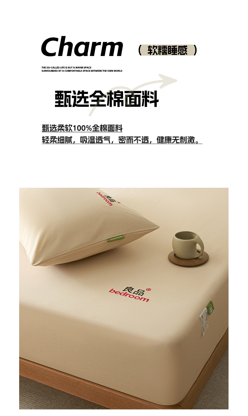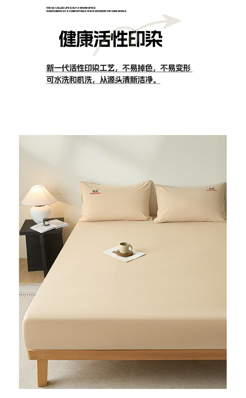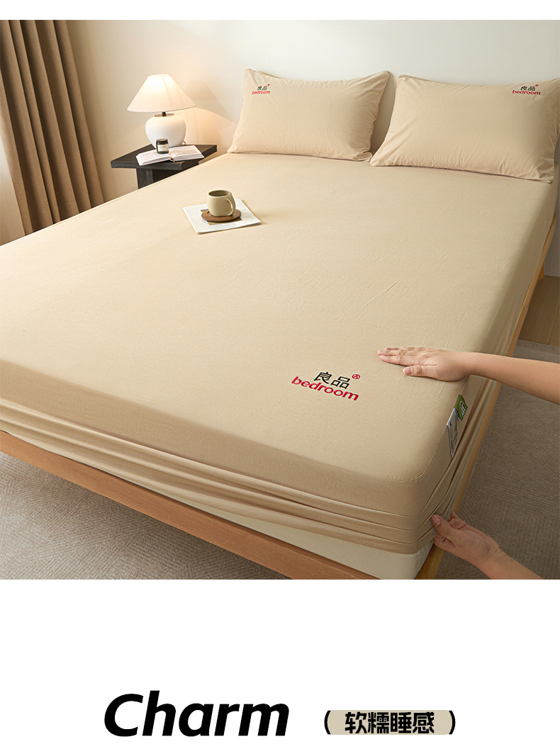 芬晴家纺 2026新款纯棉密条+纯色单层床笠 纯色-浅卡