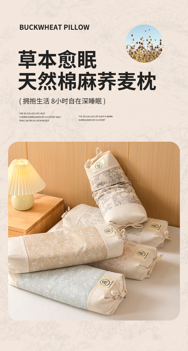 当前位置: 91家纺网 > 商品网购 > 枕头/枕芯/保健枕/颈椎枕 > 枕头枕芯 > 仁宇枕业 2026新款棉麻古朴两用绑带款系列荞麦枕枕头枕芯 组合图仅供展示不可下单