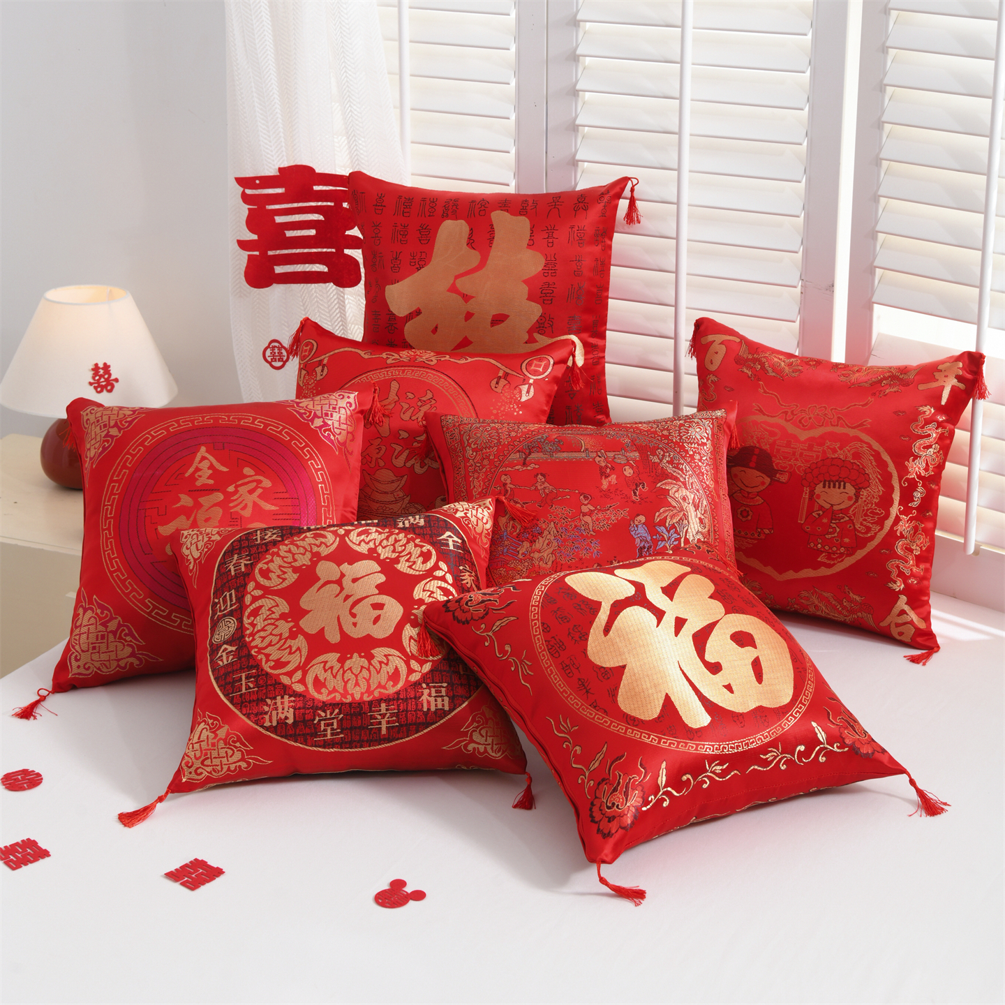 当前位置: 91家纺网 > 商品网购 > 居家日用 > 靠垫/抱枕 > 仁宇枕业 2026新款过年新年大红结婚婚庆喜庆靠枕腰靠抱枕 贡缎婚庆抱枕-大福大贵