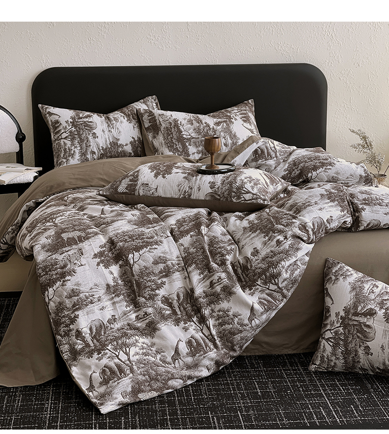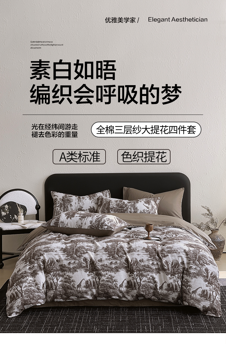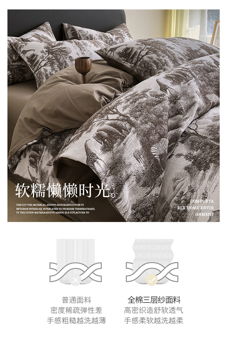 当前位置: 91家纺网 > 商品网购 > 床品套件 > 四件套 > 全棉普通四件套 > 琪格格纺织 2026新款60s纯棉加厚三层纱系列四件套 三层纱 海纳公园