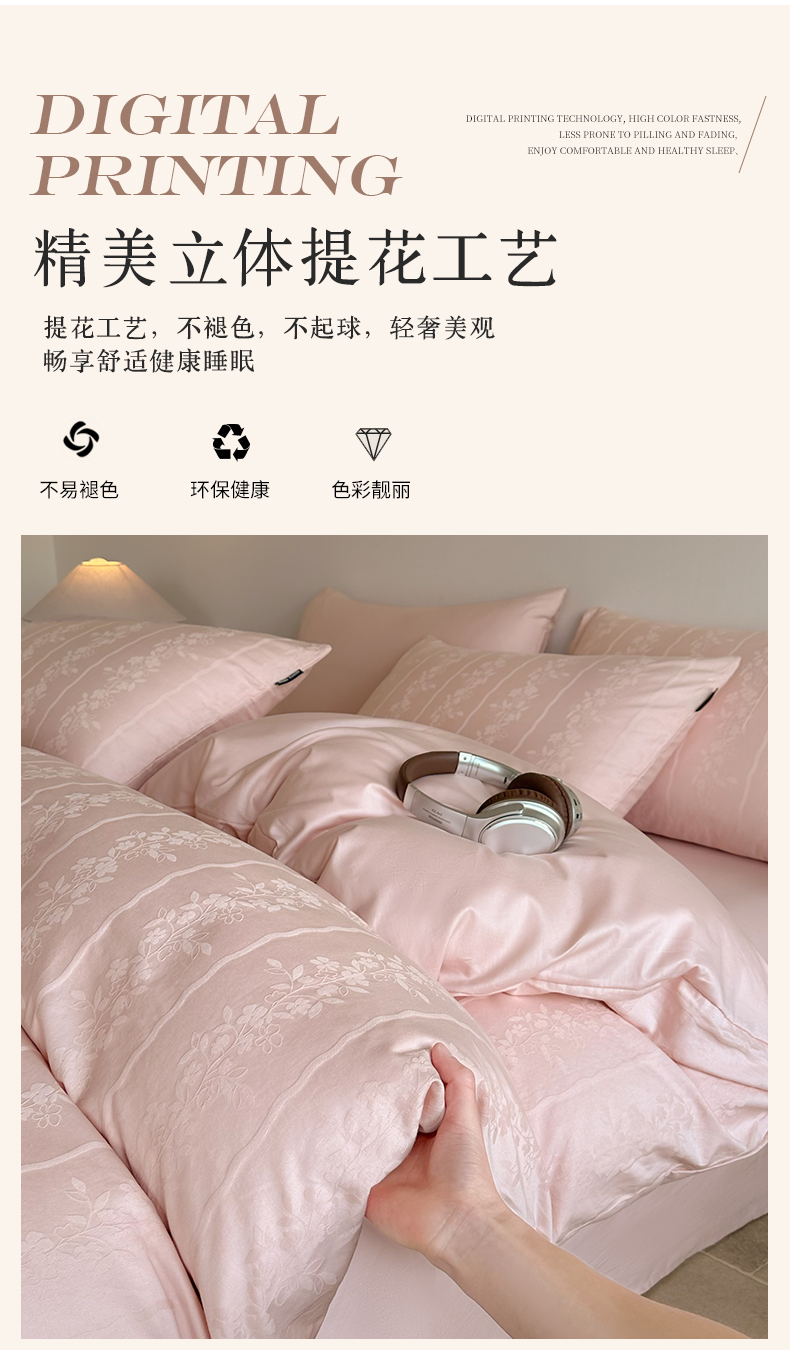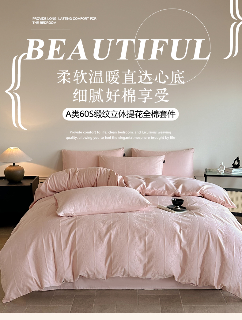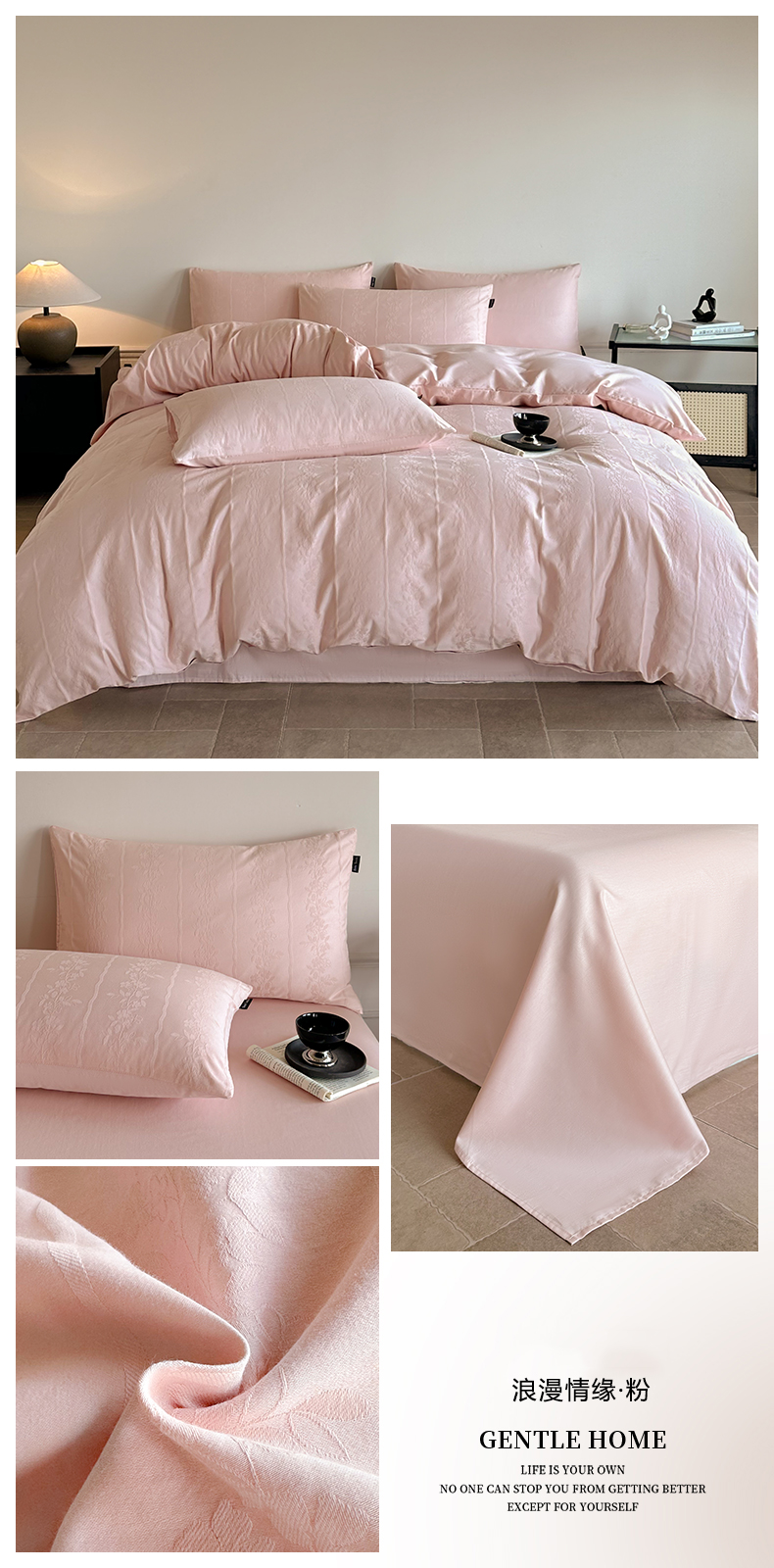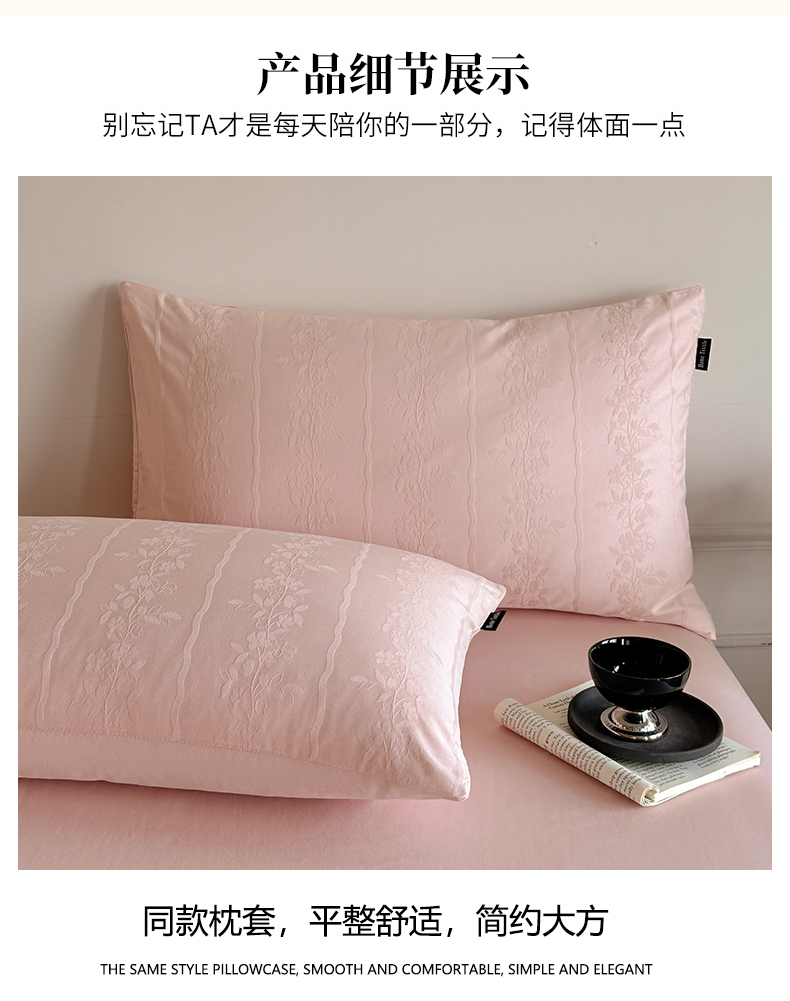 商品名称:卧趣家纺 2026新款A类60S贡缎提花全棉四件套 浪漫情缘-粉