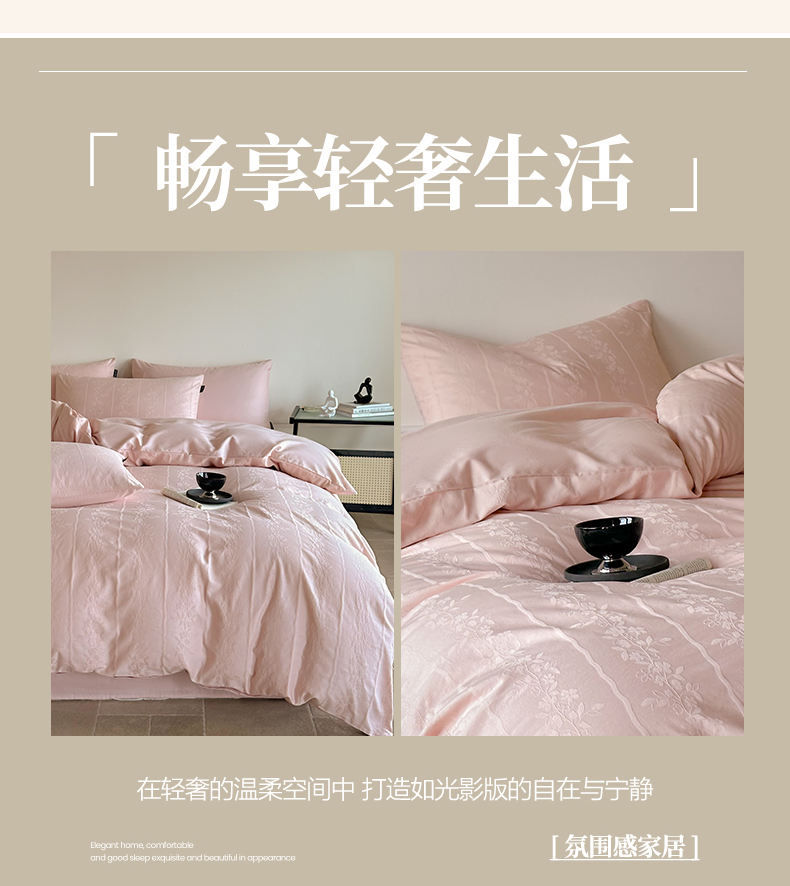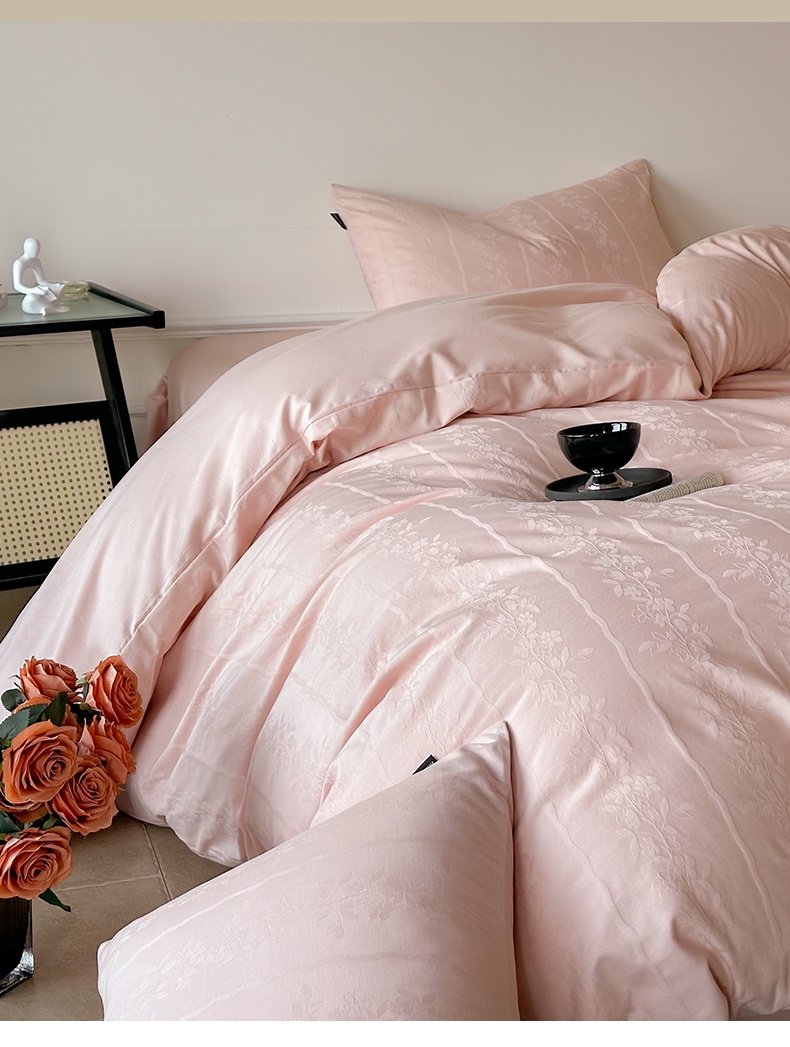卧趣家纺 2026新款A类60S贡缎提花全棉四件套 浪漫情缘-粉
