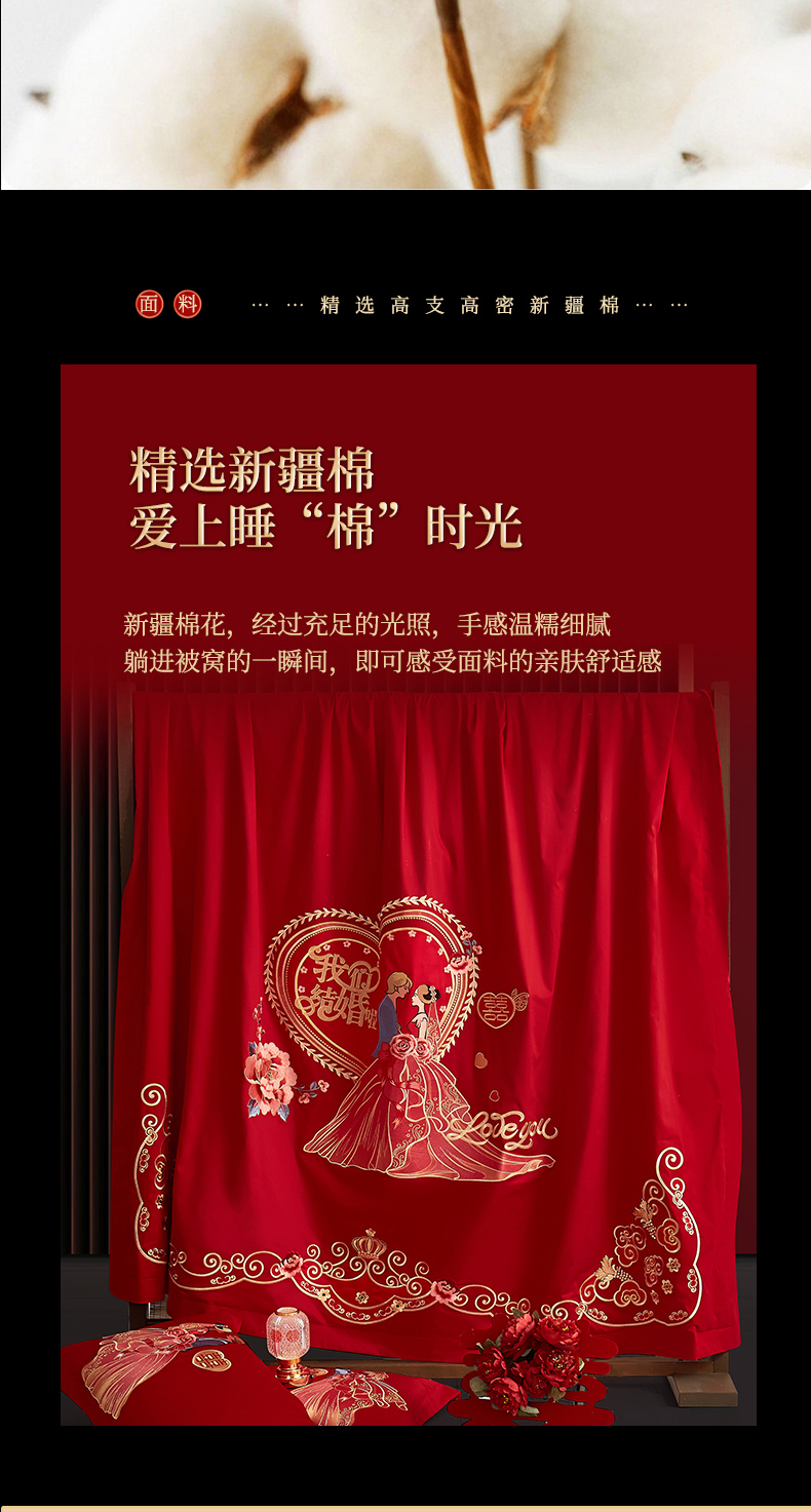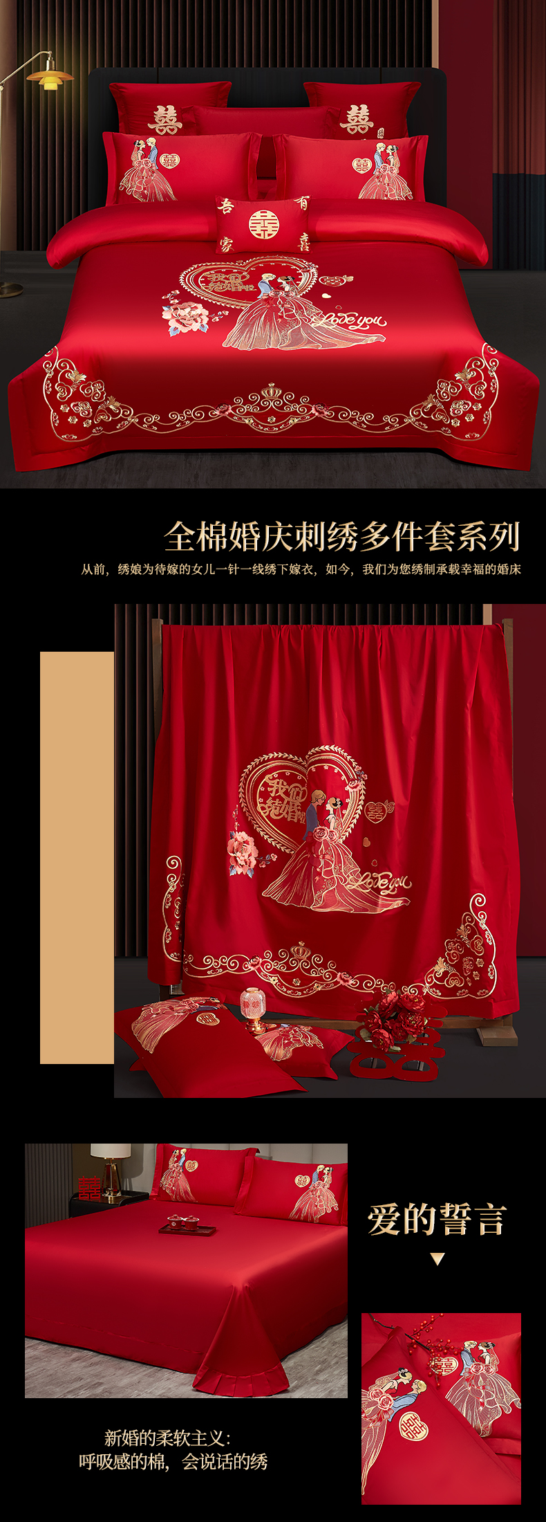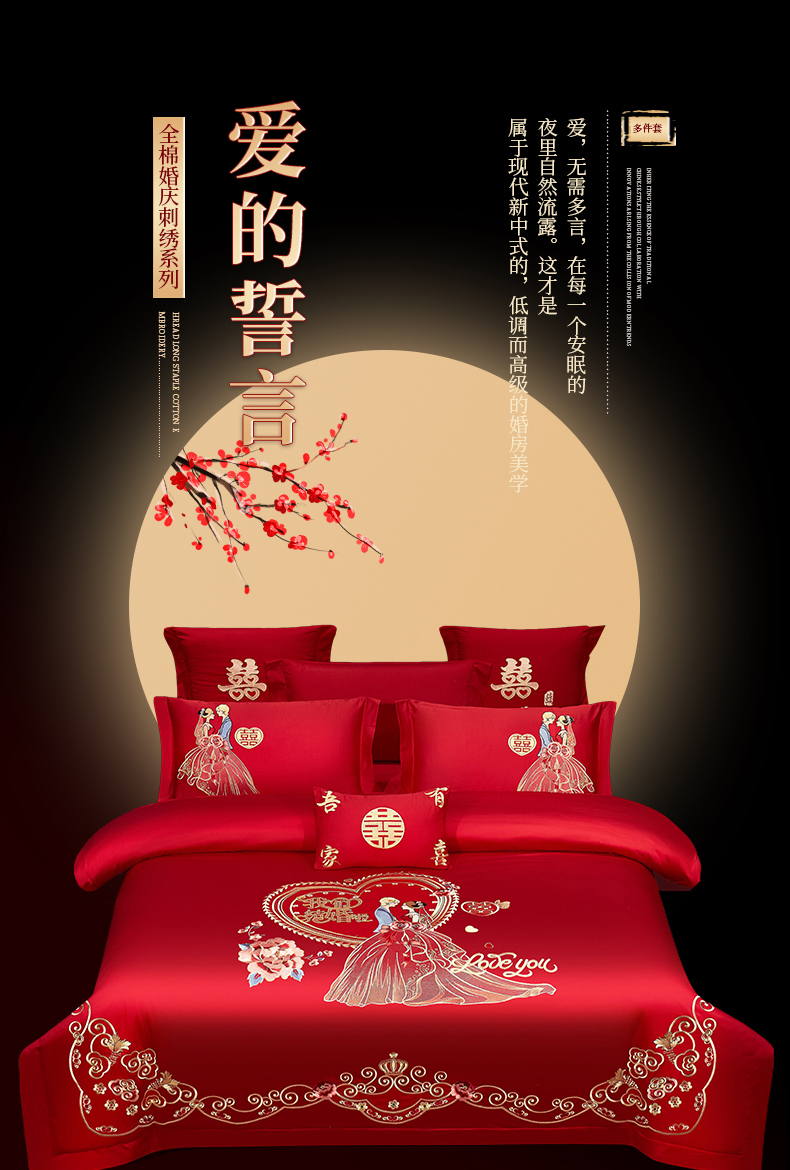 当前位置: 91家纺网 > 商品网购 > 床品套件 > 四件套 > 婚庆四件套 > 浩情国际婚庆供货中心 2026新款100%全棉长绒棉纯棉婚庆四件套结婚刺绣六件套多件套长期供货 (提供买家秀) 爱的誓言