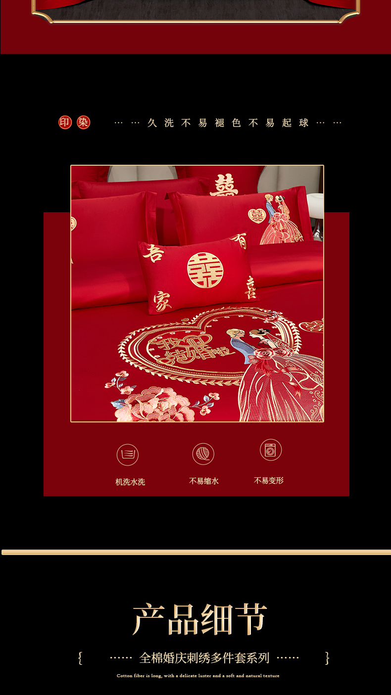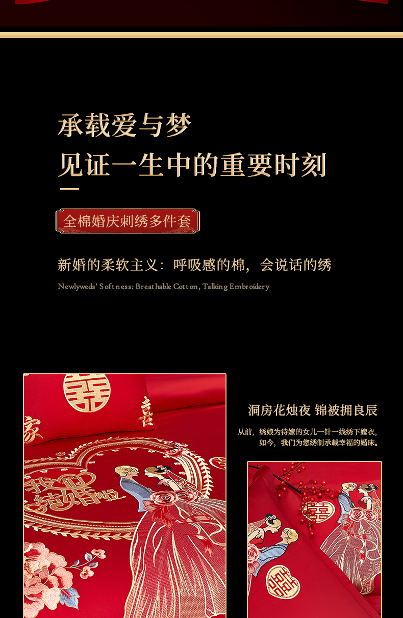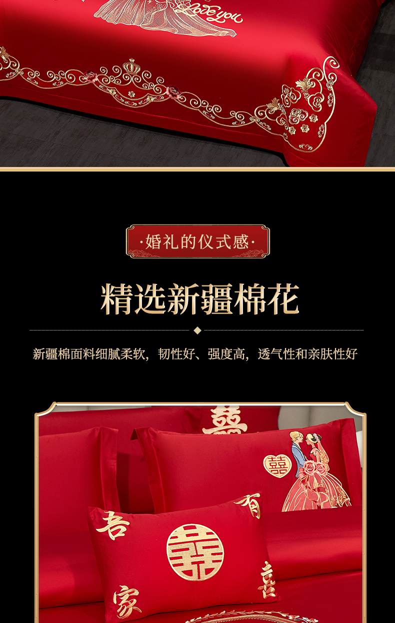 当前位置: 91家纺网 > 商品网购 > 床品套件 > 四件套 > 婚庆四件套 > 浩情国际婚庆供货中心 2026新款100%全棉长绒棉纯棉婚庆四件套结婚刺绣六件套多件套长期供货 (提供买家秀) 爱的誓言