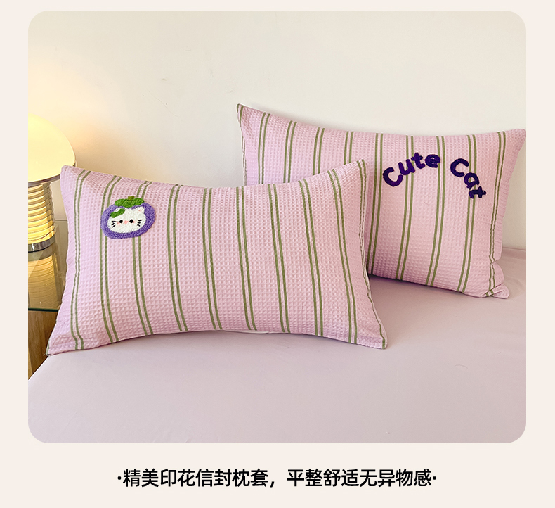 商品名称:笙意家纺 2026新款全棉A版华夫格B版40支毛巾绣四件套 山竹小猫