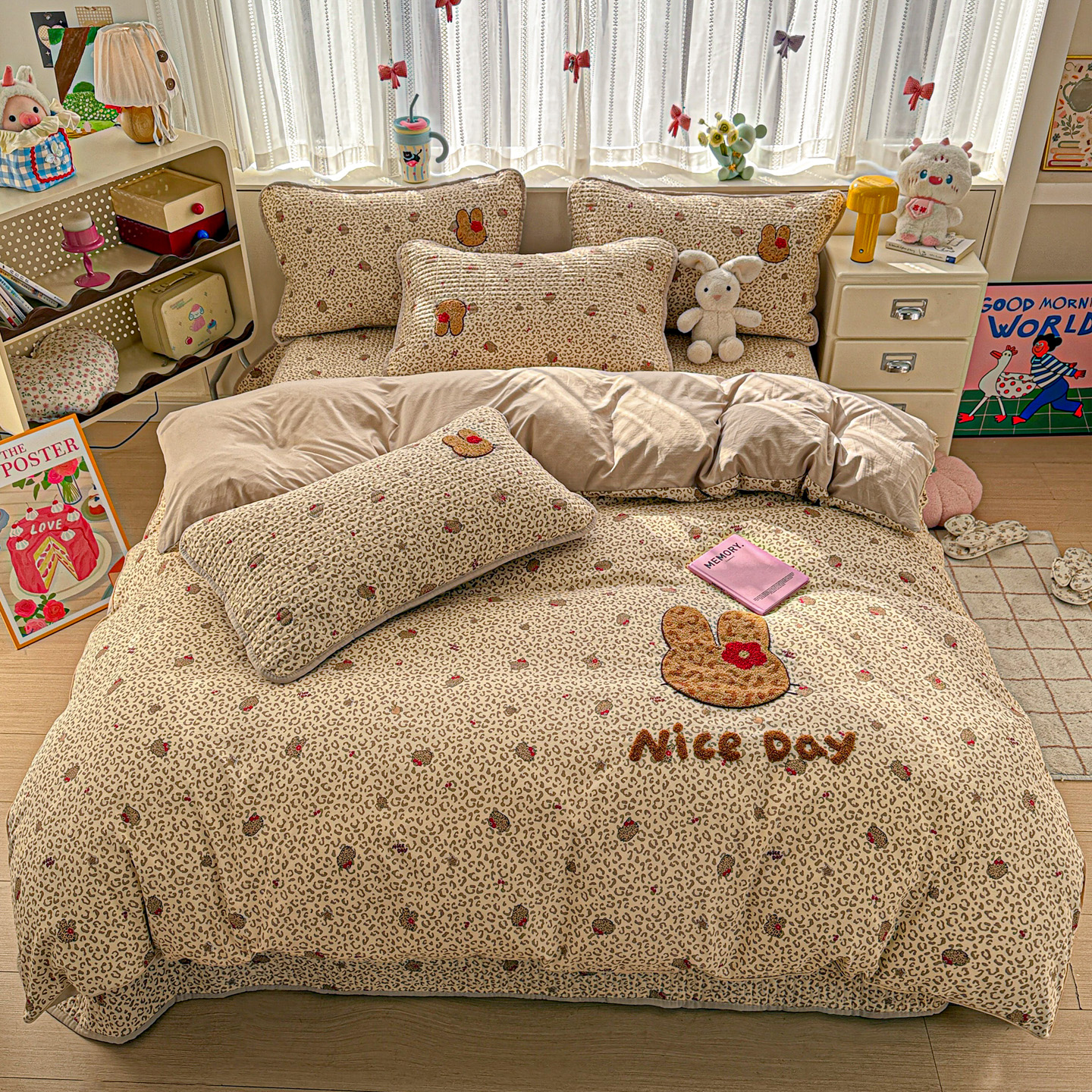 (总)富米莱单品馆 2026新款仿棉小清新夹棉毛巾绣四季通用学生薄款床垫床褥三件套一跑量款,安妮女孩,豹纹蝴蝶结,豹纹猫,嗨嗨兔,可爱小象,梦幻乐园,奶味狗狗,小新日记,星星伙伴