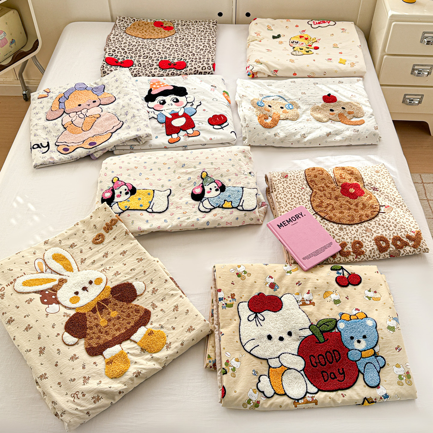 (总)富米莱单品馆 2026新款古法仿棉毛巾绣夹棉床盖床垫床褥床笠-四季款系列,安妮女孩,豹纹蝴蝶结,豹纹猫,嗨嗨兔,可爱小象,梦幻乐园,奶味狗狗,小新日记,星星伙伴