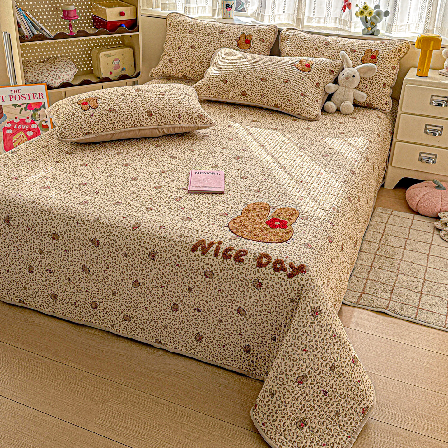富米莱单品馆 2026新款古法仿棉毛巾绣夹棉床盖床垫床褥床笠-四季款系列 豹纹猫