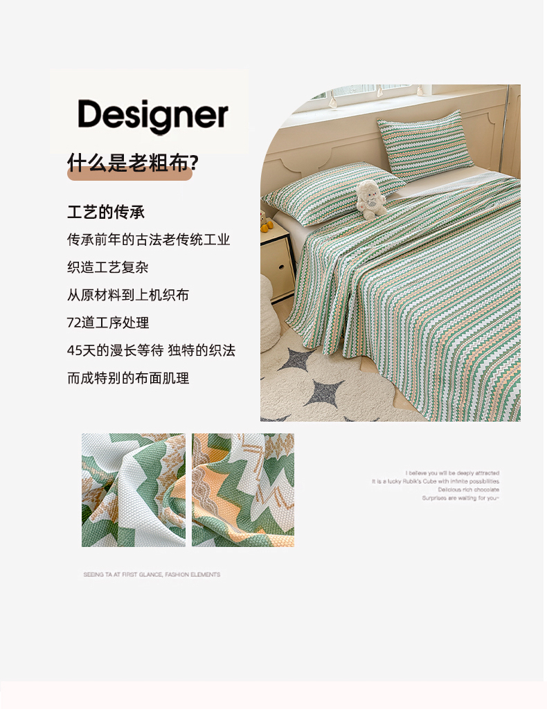 • 91家纺网 家纺一手货源 找家纺 爱彼家纺 2026新升级细沙工艺款亲肤柔软老粗布床单凉席席子春夏热门款-直播热卖 向往条绿