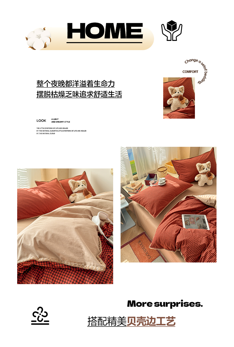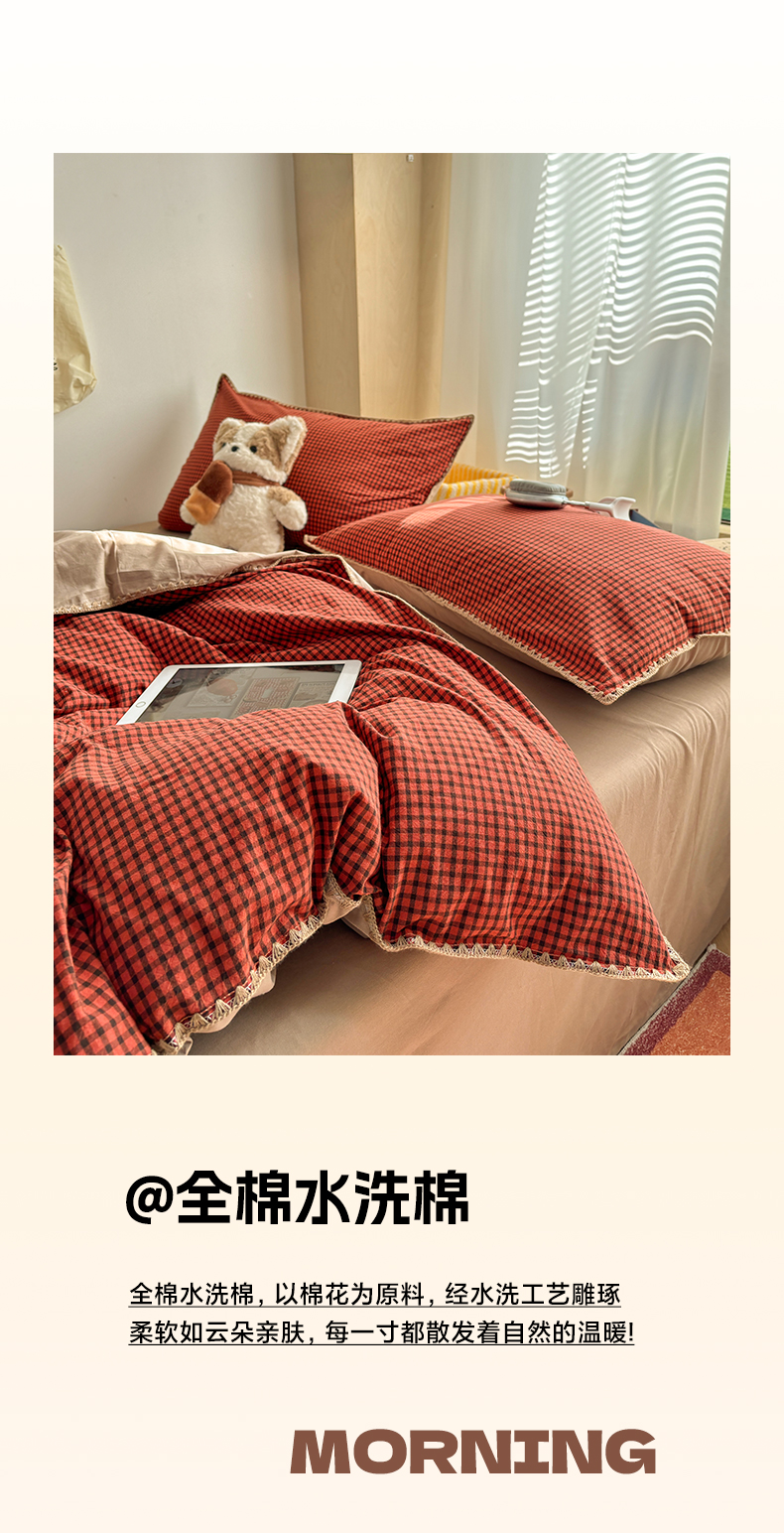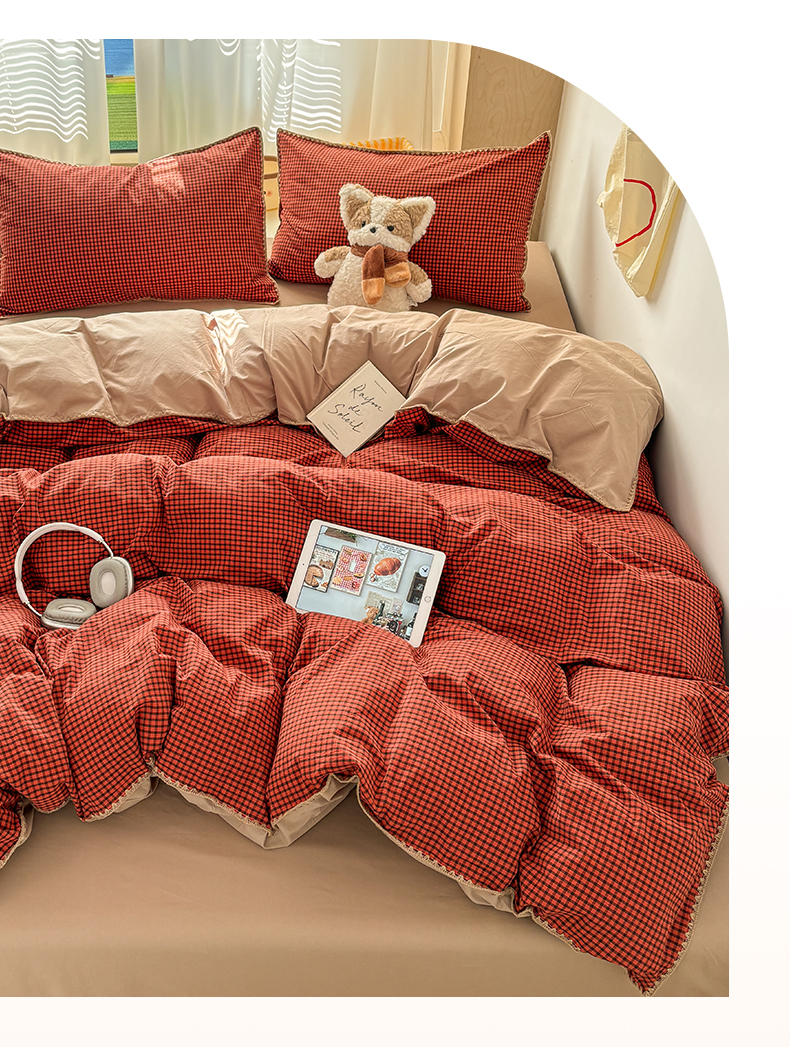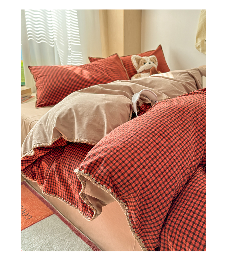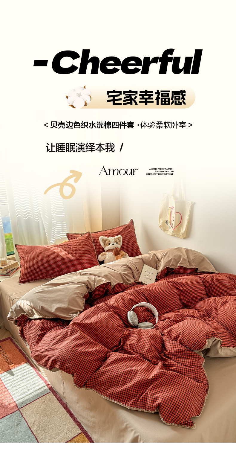 当前位置: 91家纺网 > 商品网购 > 床品套件 > 四件套 > 全棉普通四件套 > 雅居纺家纺 2026新款全棉色织水洗棉贝壳边四件套 贝壳边-苏桃红格