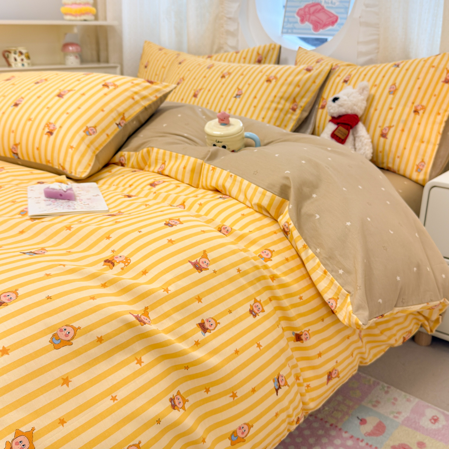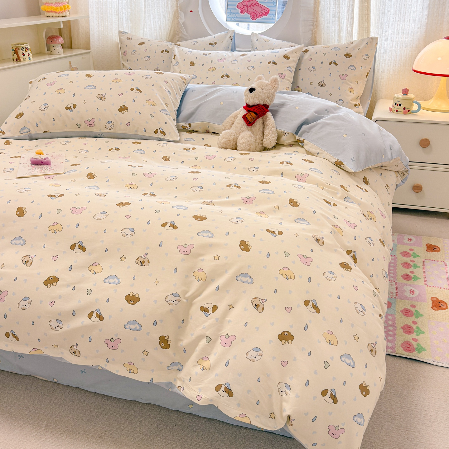 (总)呗旺鹿 2026新款全棉纯棉40支13070卡通印花四件套-场景二,萌星,鼻涕狗,果子象,机灵猫,可爱星人,幸福小熊