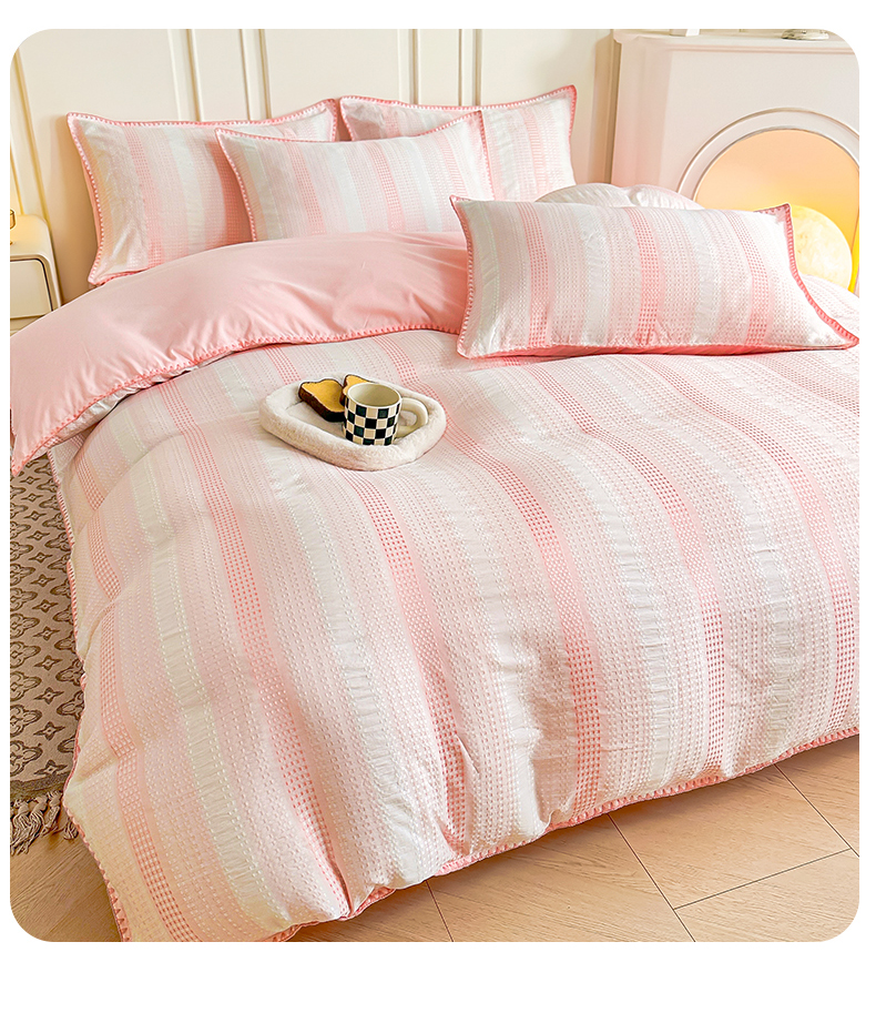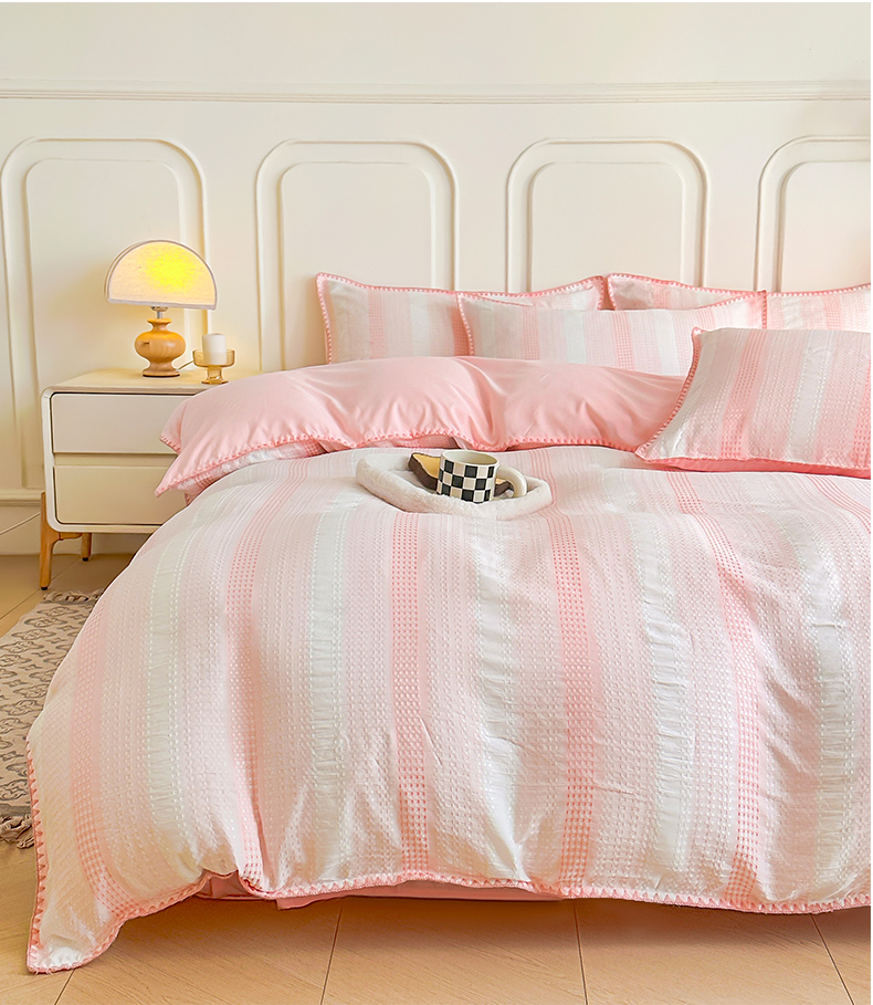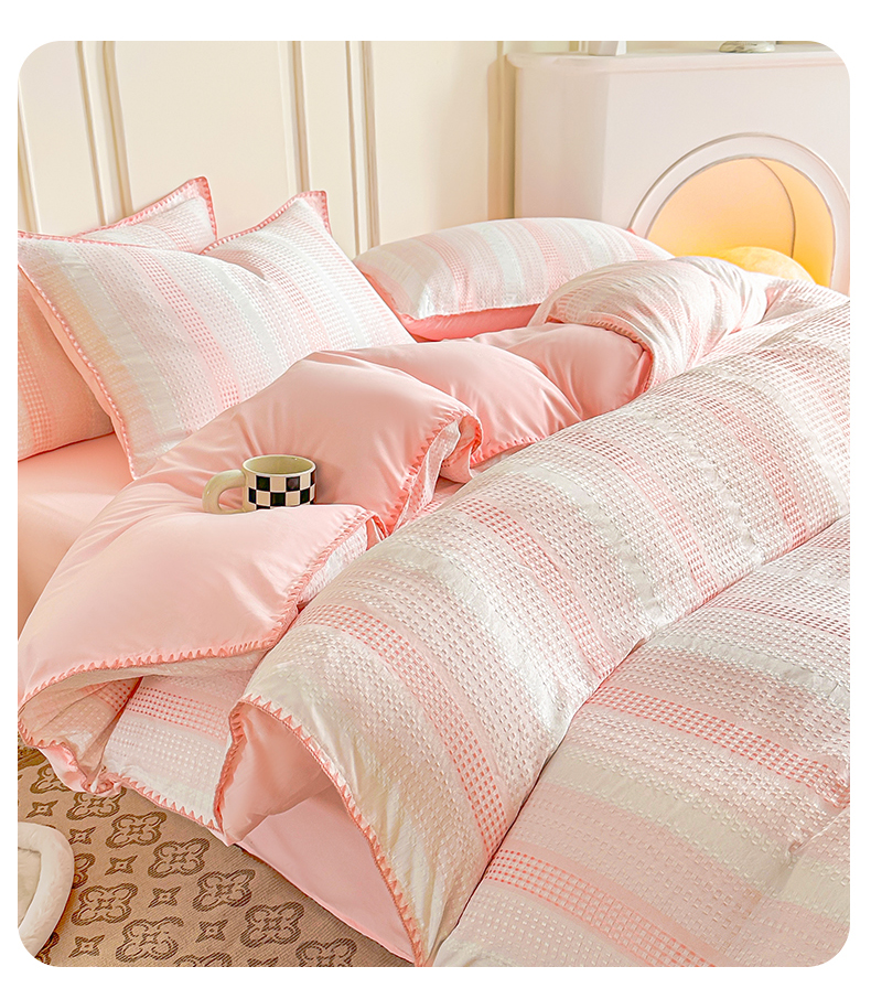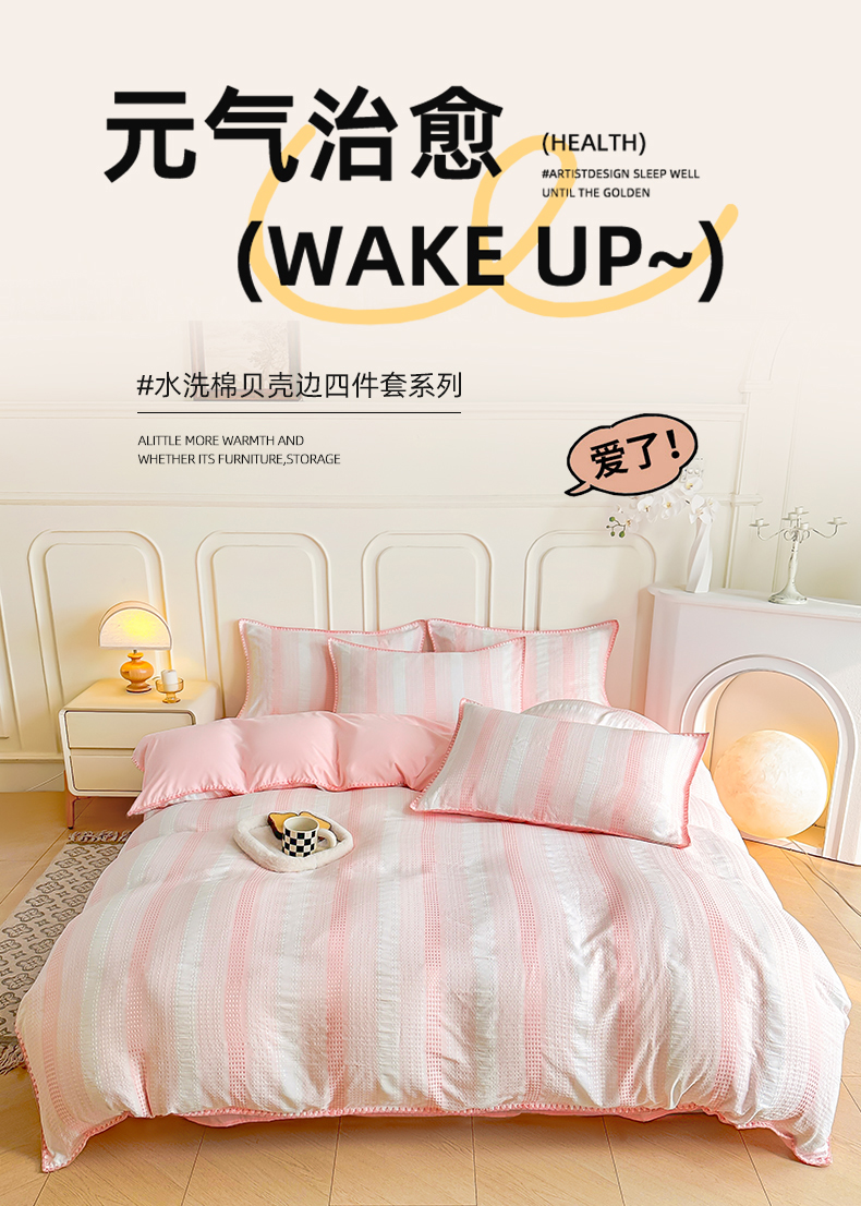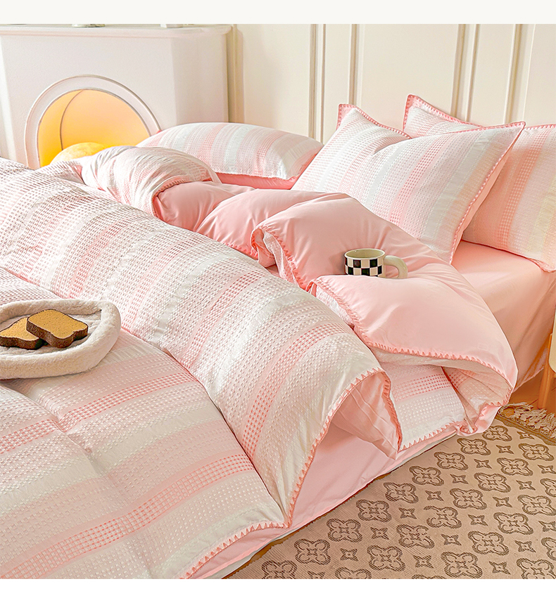 当前位置: 91家纺网 > 商品网购 > 床品套件 > 四件套 > 水洗棉四件套 > 木子家纺 2026新款水洗棉贝壳边四件套-皖沙 珊瑚粉
