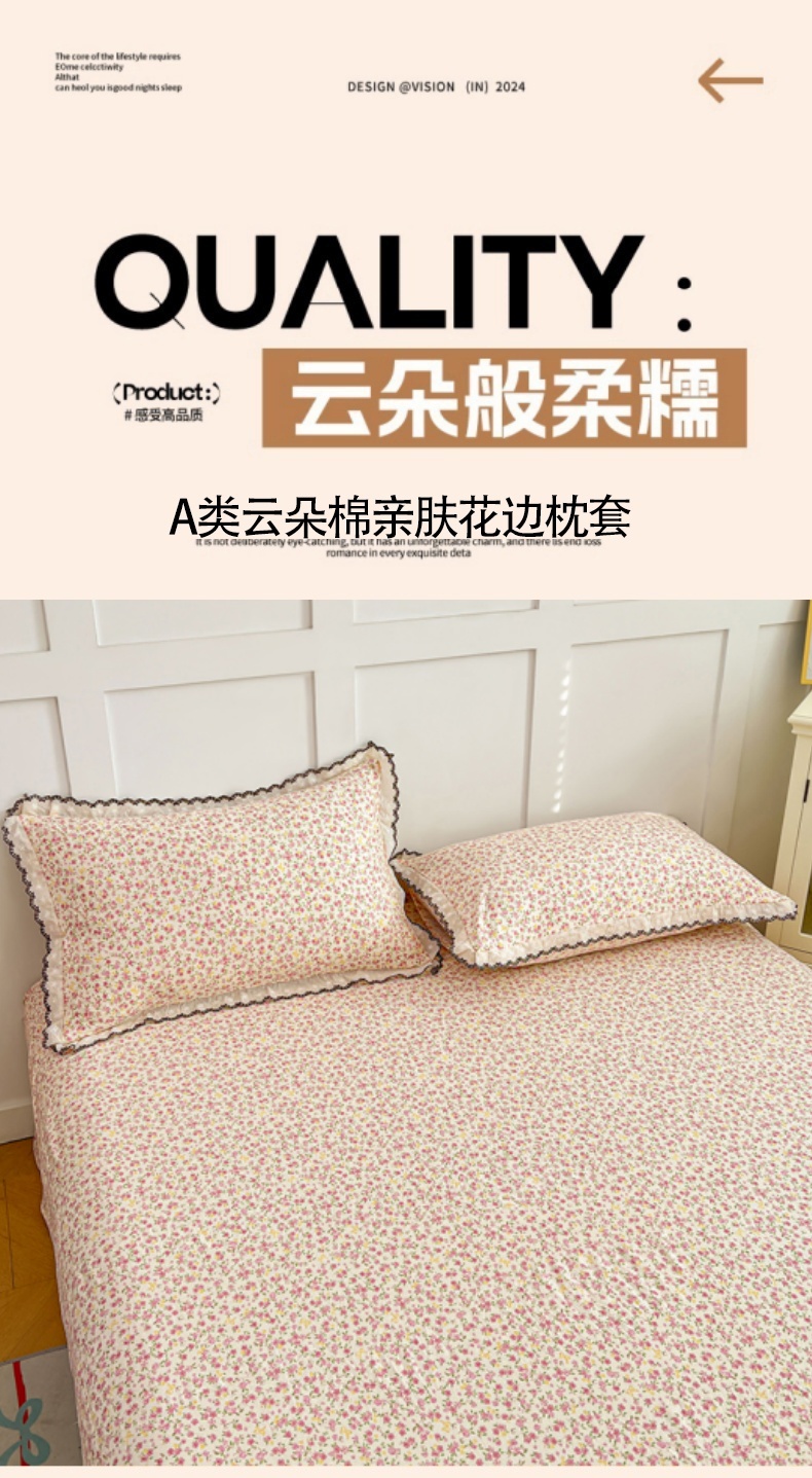 • 91家纺网 家纺一手货源 找家纺 圣比熊 2026新款A类云朵棉蕾丝花边枕套宿舍单人单只一只装枕芯内胆套 芊芊花海(单层蕾丝花边)