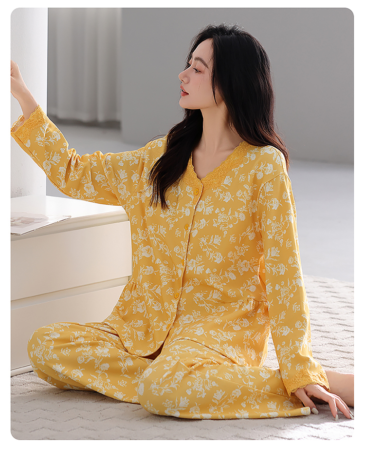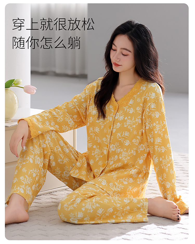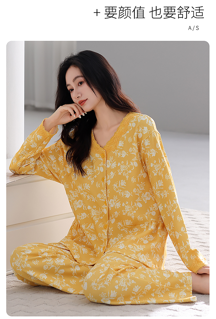 (总)洛兰沙家居馆 2026新款长袖睡衣女款纯棉春季印花开衫翻领家居服可外穿套装 第二批,45145,45146,45147