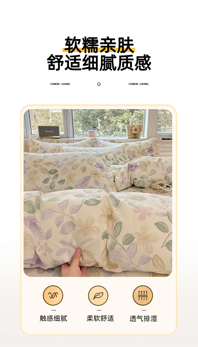 (总)名优家纺 2026新款60S13374高支密全棉印花纯色四件套,宾利兰+浅灰,加仑紫+樱花粉,可可棕+奶黄,莫奈绿+奶黄,奶黄+樱花粉,浅灰,星耀黑+可可棕,樱花粉+浅灰,初简,初见,春日序-紫,洛颜-蓝,念枝,暖冬-桔,软麻-咖,森野花簇-绿,熊派对-米,绣花仙-蓝,絮棠-灰,絮棠-米,与美集,予甜-绿,云璟-紫