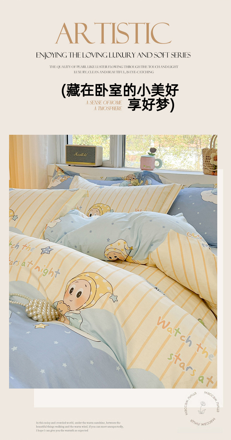当前位置: 91家纺网 > 商品网购 > 床品套件 > 四件套 > 全棉普通四件套 > 名优家纺 2026新款13070全棉印花四件套 星语星愿