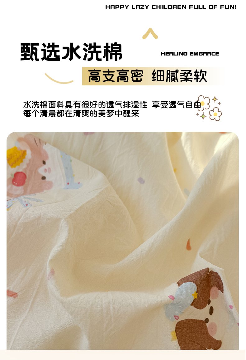 (总)颜选 2025新款绵柔水洗棉夏被四件套,贝利卡,饼干熊,波点,黑狗狗,蝴蝶结熊,花花狗,可可猫咪,铃铛狗