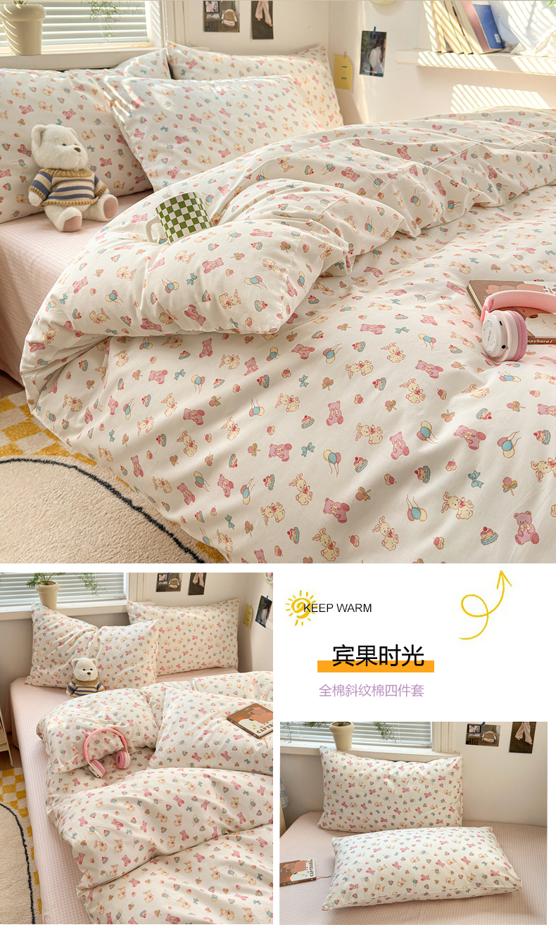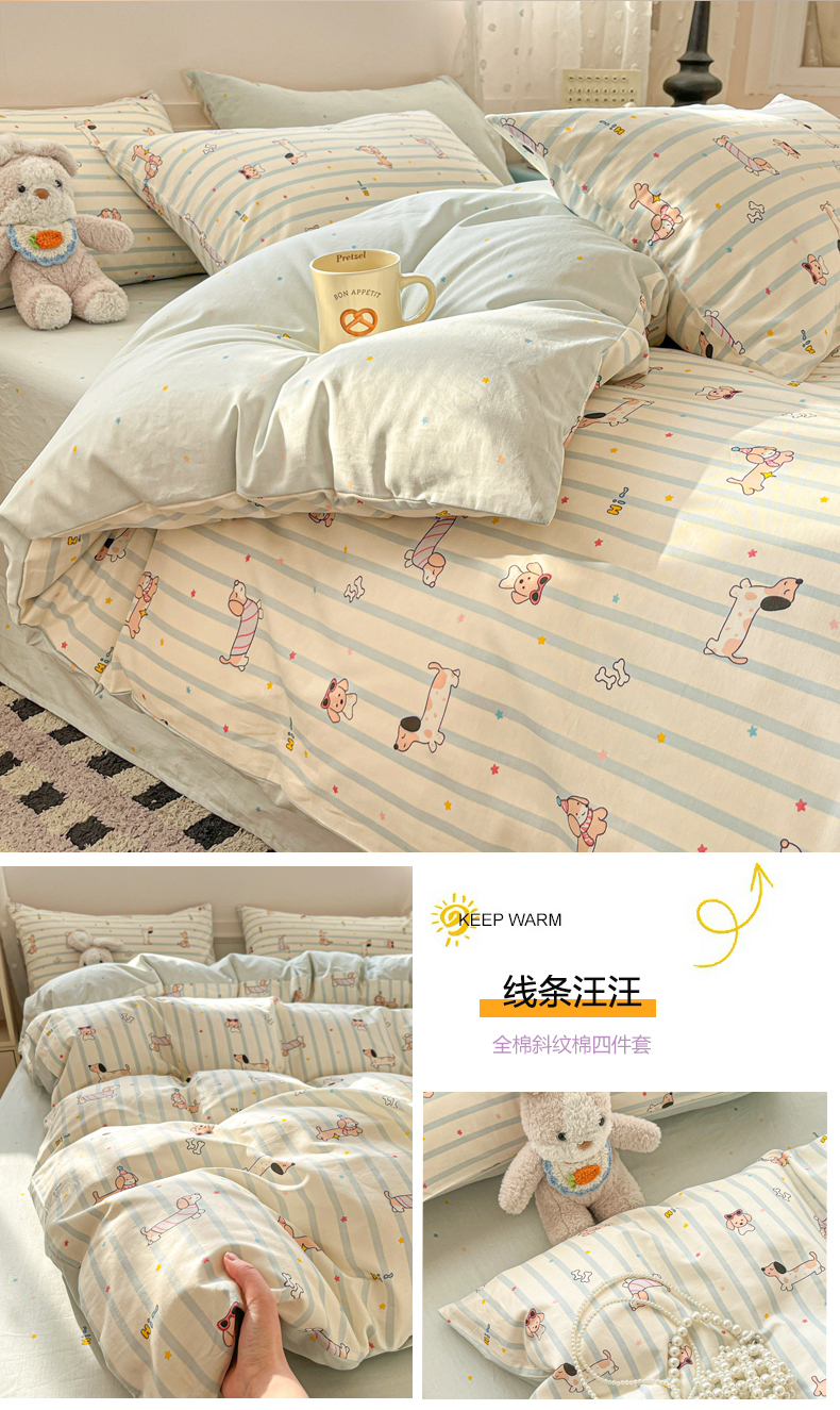 当前位置: 91家纺网 > 商品网购 > 床品套件 > 四件套 > 全棉普通四件套 > 麦伦家居 2026春夏新品13372全棉卡通小清新四件套 时光里