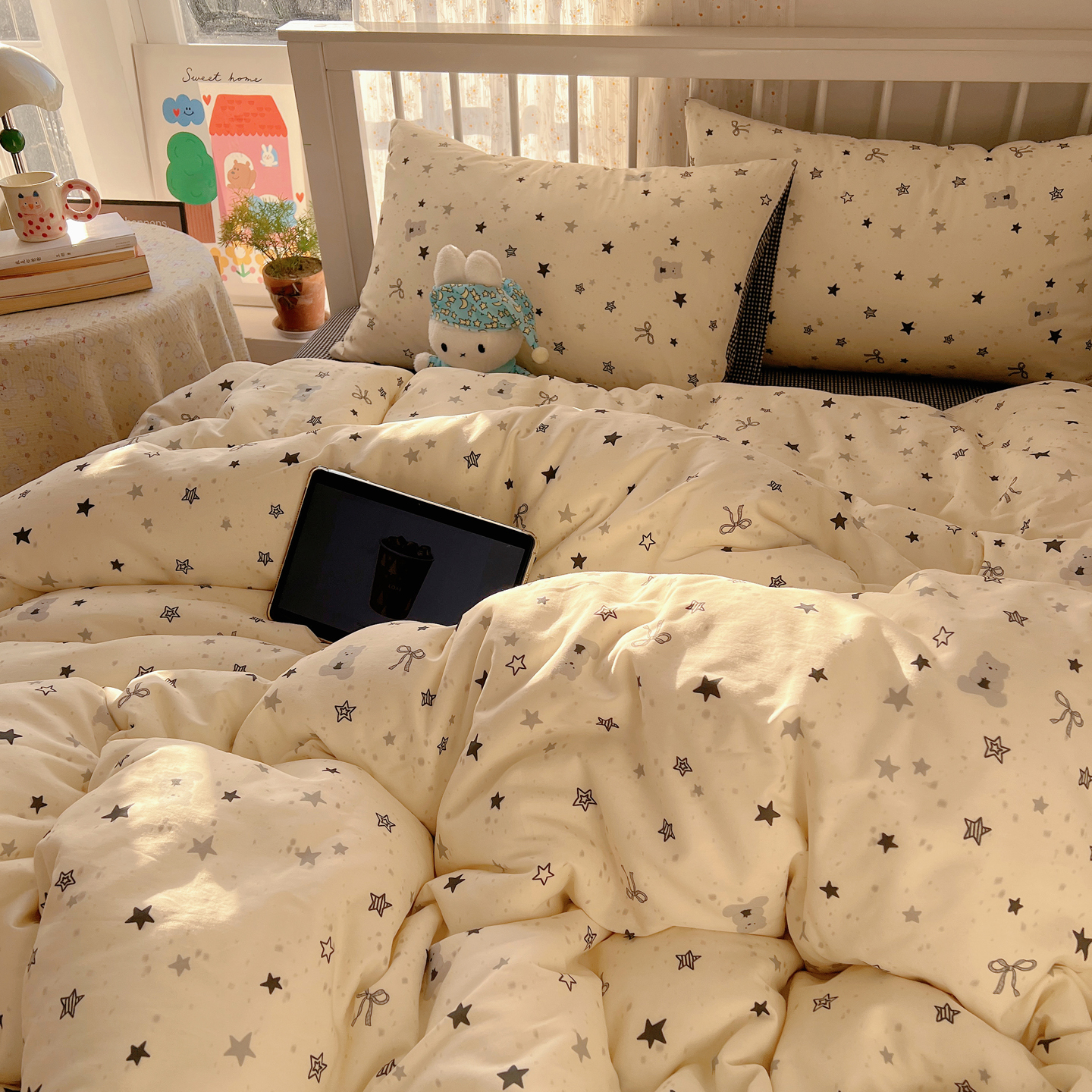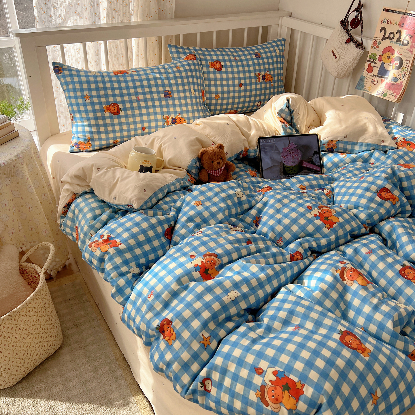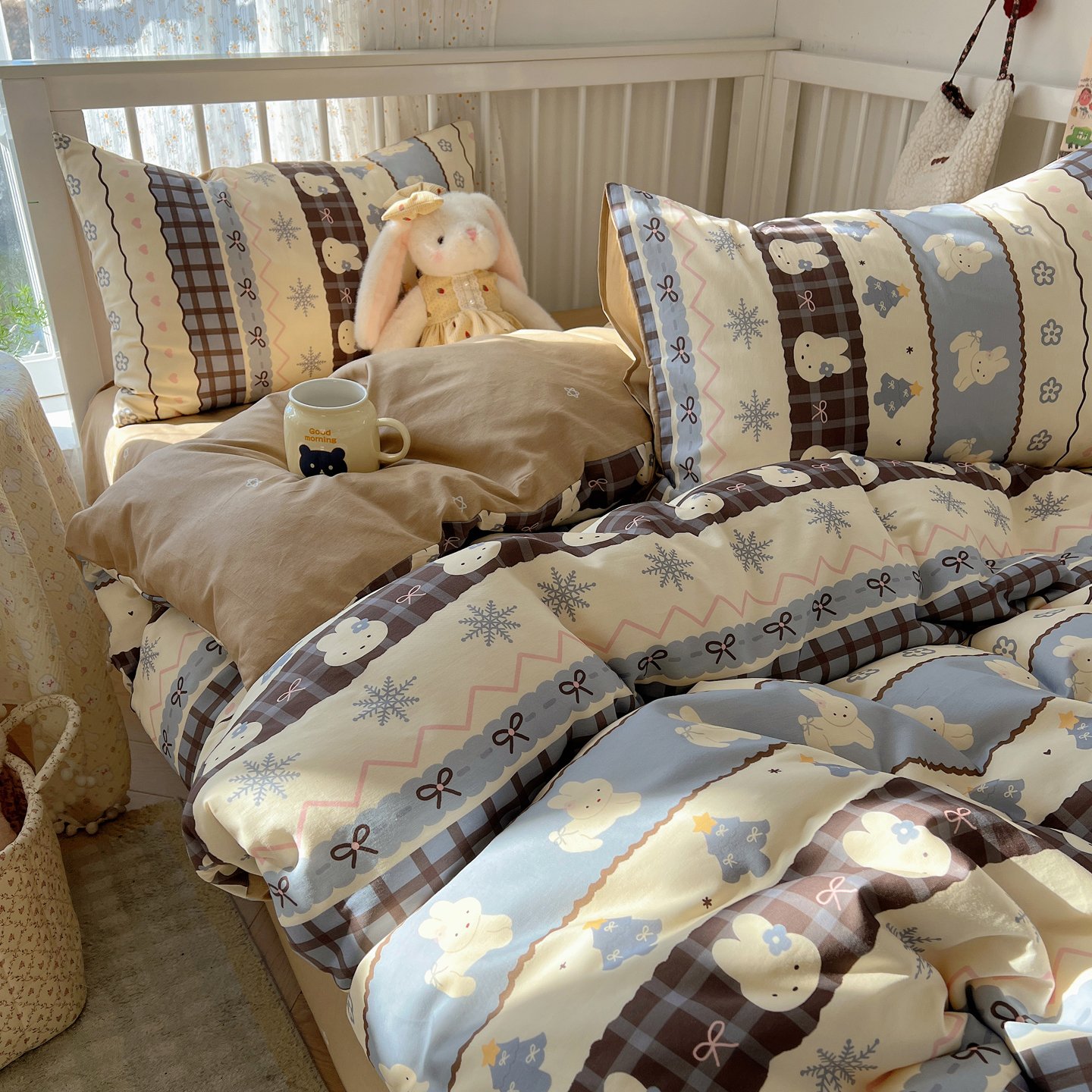 (总)桃喜 2026新款全棉混搭卡通印花学生三件套四件套,费尔岛蝴蝶结小狗,费尔岛小熊,可爱动物团,可爱小兔子,星星猫咪