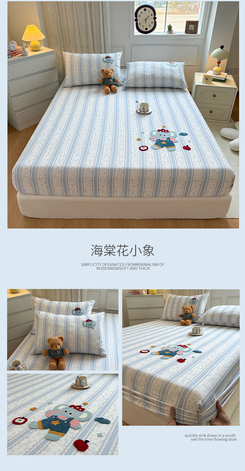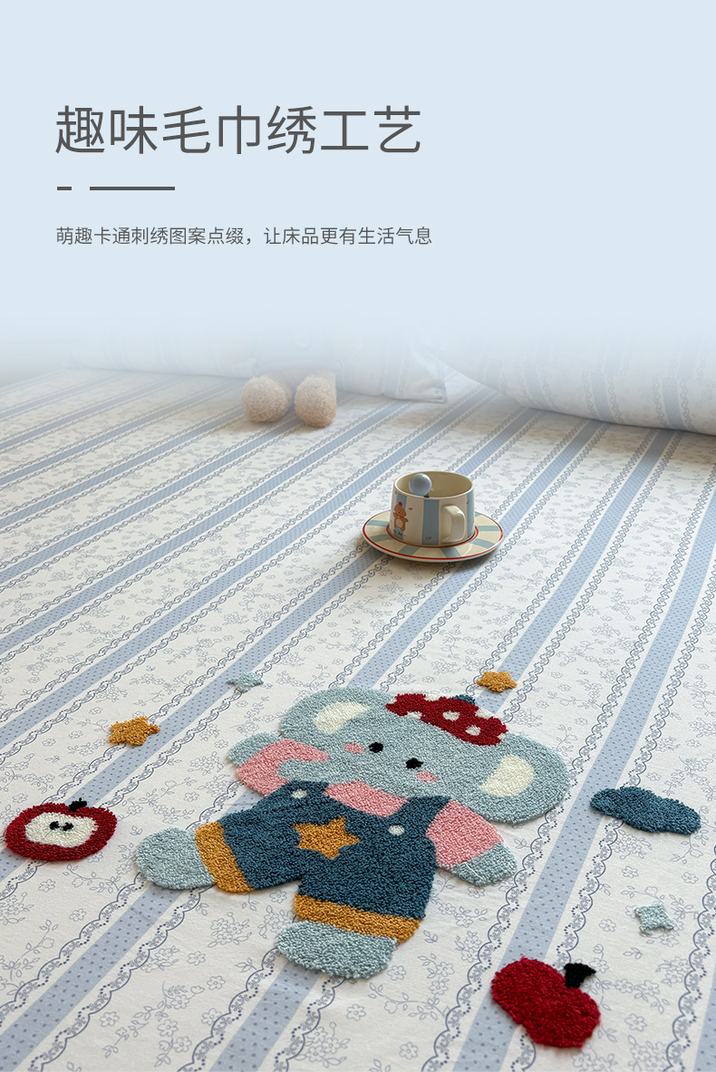 (总)居眠 2025新款全棉纯棉云感皱皱纱毛巾绣床单,白胡子狗狗,波点甜甜圈,大象先生,蝴蝶猫咪,腊肠樱桃,三只小可爱,圣诞树,兔兔小姐,外星小鸟,小象汽车,组合图仅做展示