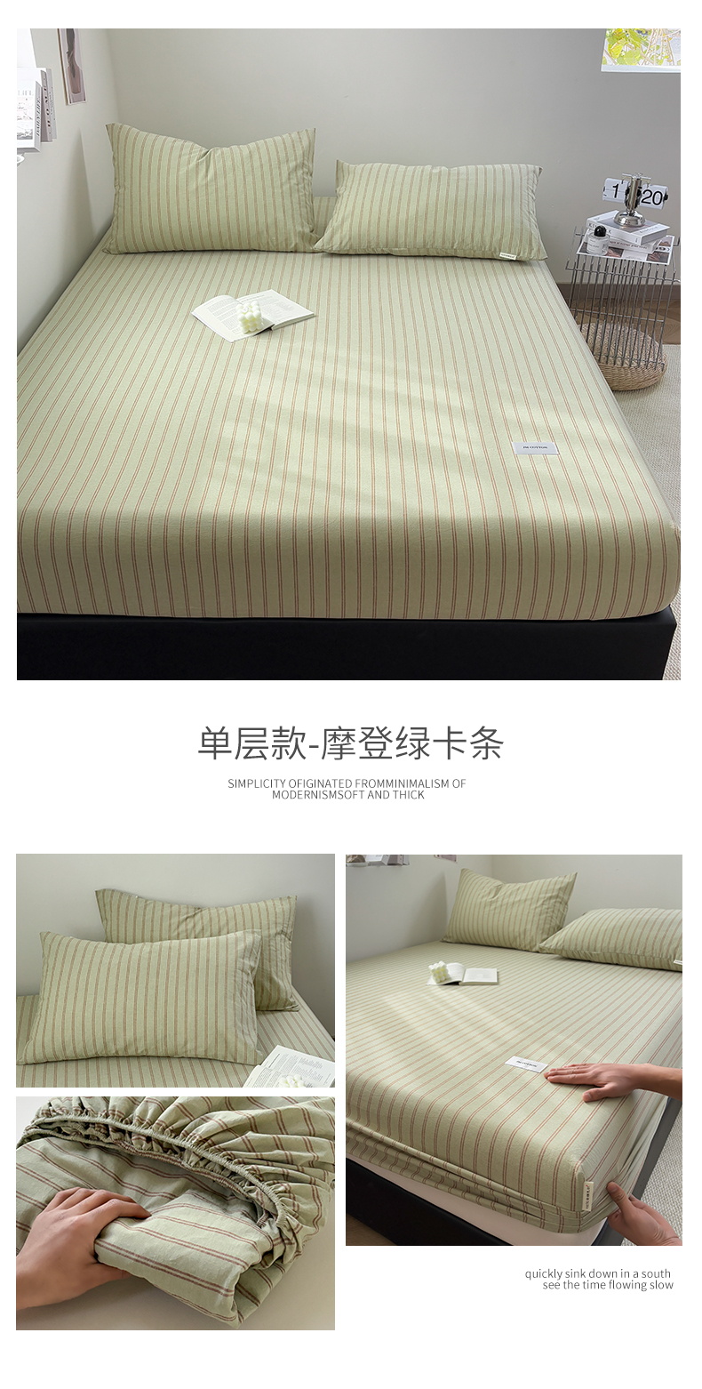 (总)居眠 2026新款单层色织水洗格子全棉床笠,单层款-摩登蓝卡条,单层款-摩登绿卡条