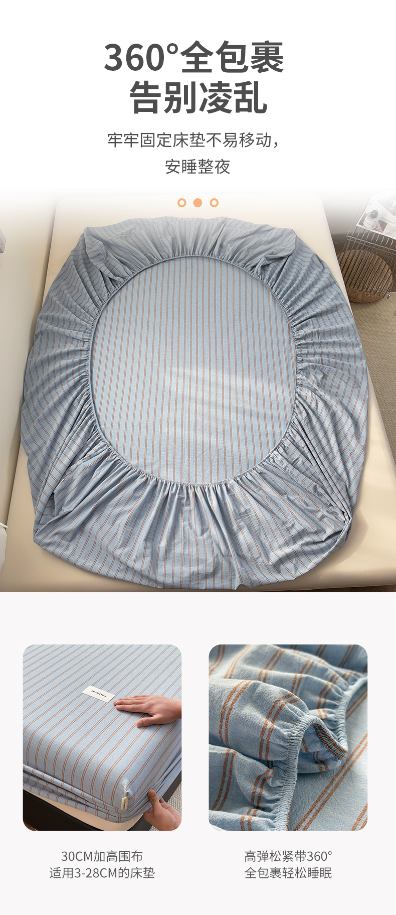 (总)居眠 2026新款全棉印花华夫格床笠,彩带条,花眠,条纹粉,细灰条,小斑点,小樱桃,樱桃小象,月亮星星,组合叠拍图
