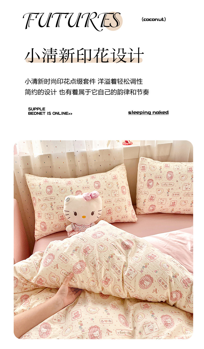 当前位置: 91家纺网 > 商品网购 > 床品套件 > 四件套 > 水洗棉四件套 > 卢赛尔 2026新款古法水洗仿棉云感棉学生三件套四件套 可爱猫