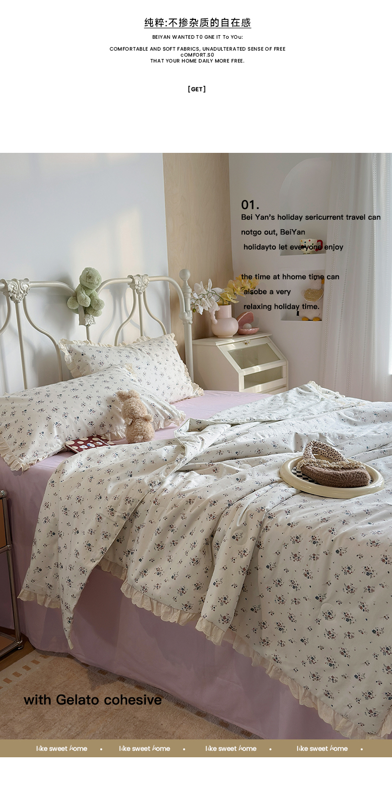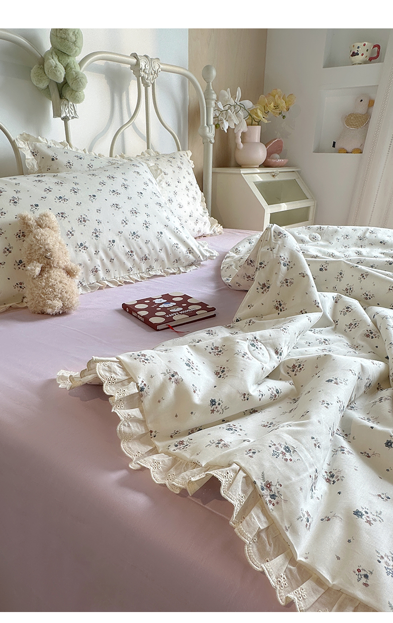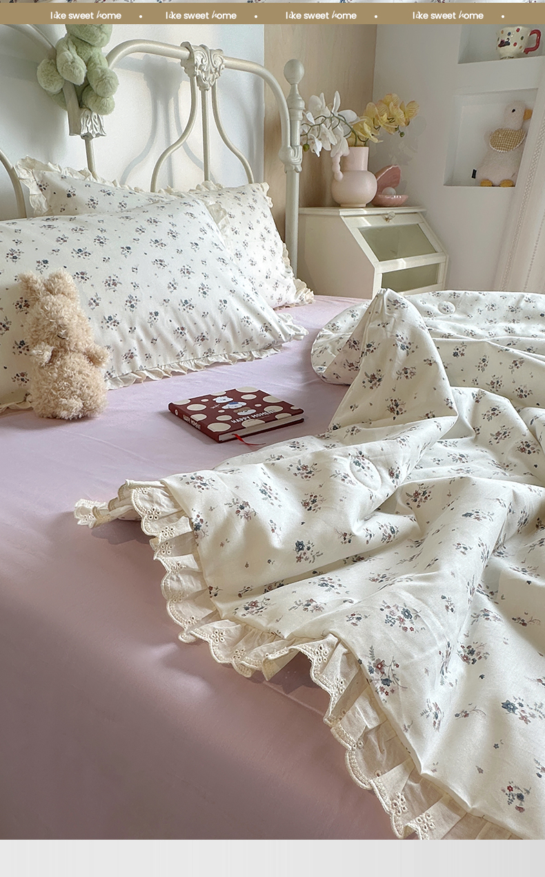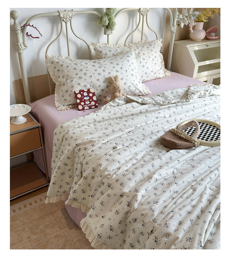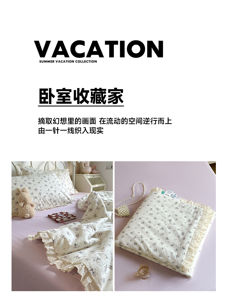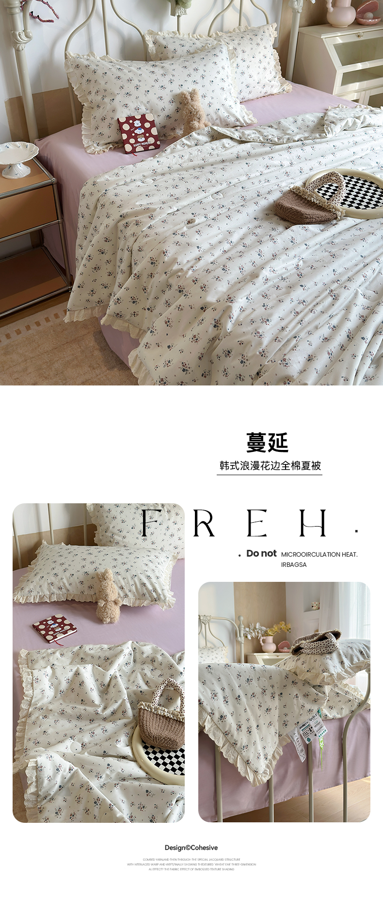 当前位置: 91家纺网 > 商品网购 > 床品套件 > 四件套 > 夏被四件套 > 绫韵家纺 2026新品夏季韩式浪漫小花边空调被夏被薄被子套件系列 蔓延