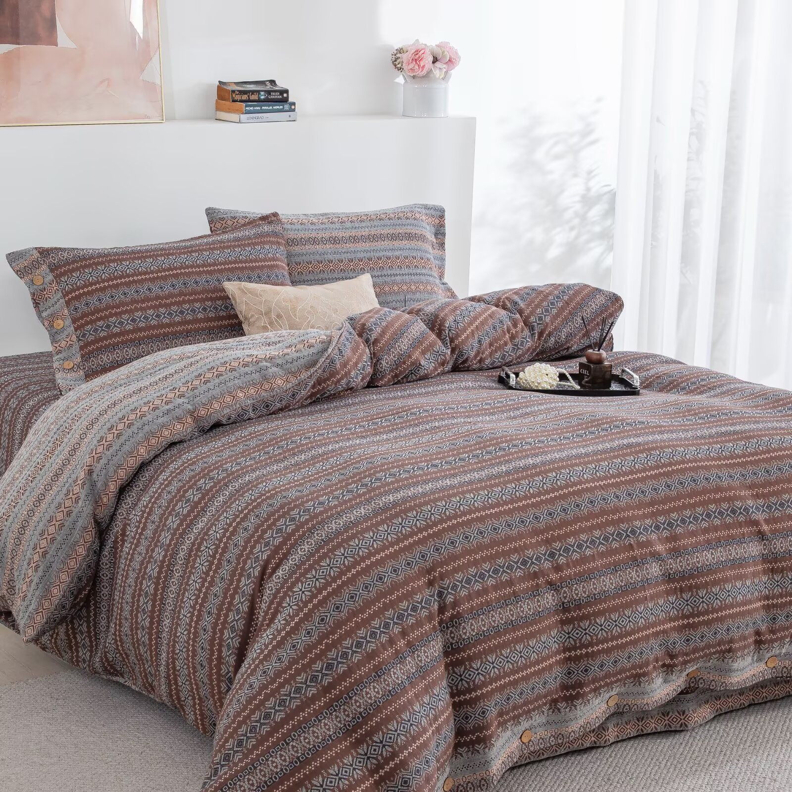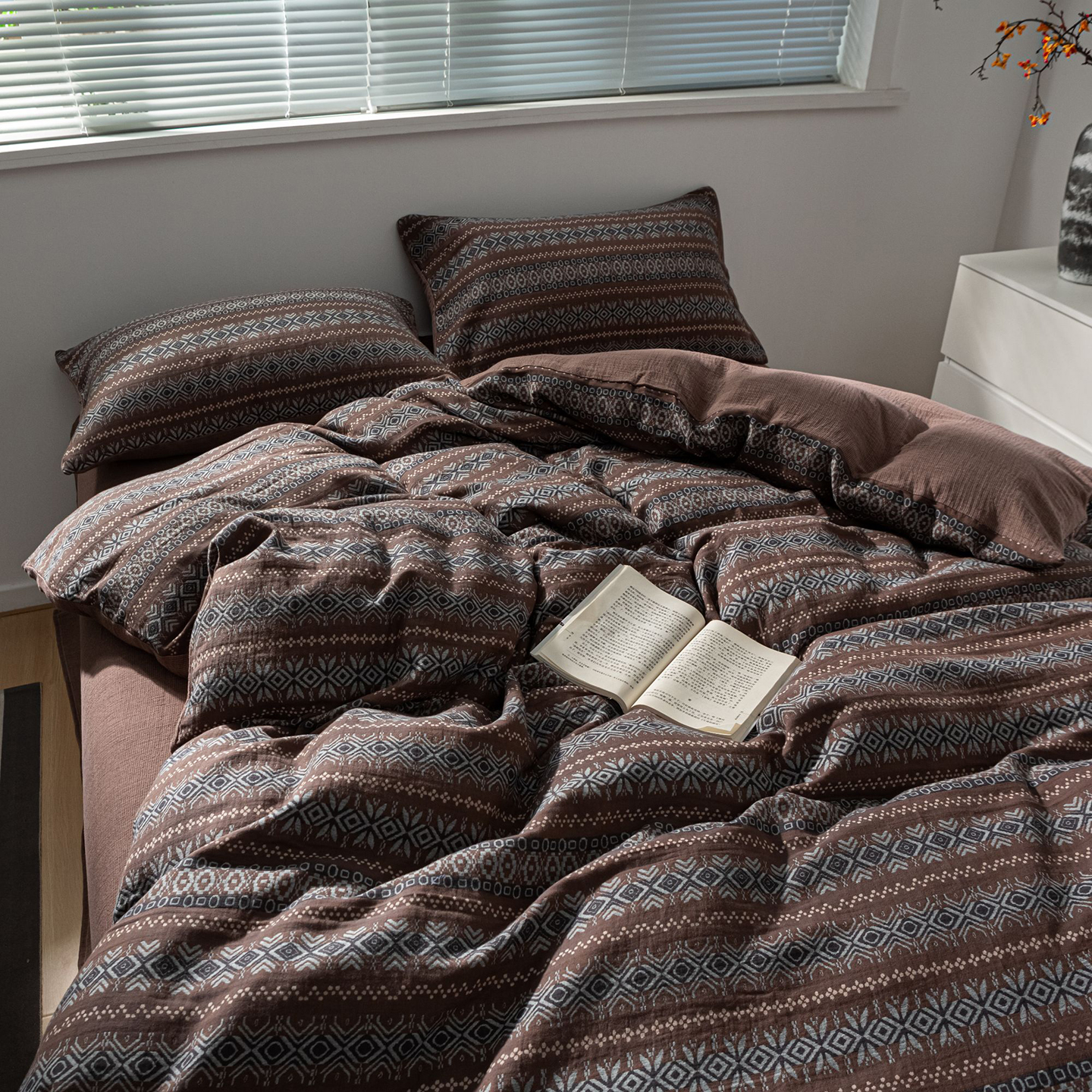 当前位置: 91家纺网 > 商品网购 > 床品套件 > 四件套 > 全棉普通四件套 > 双层纱家居 2025新款全棉纯棉色织提花双层纱四件套 波西米亚-纽扣款